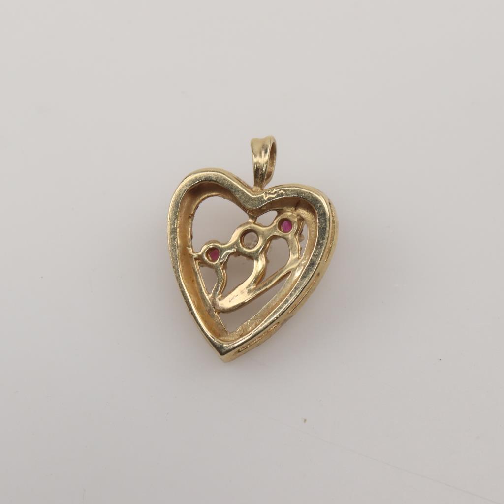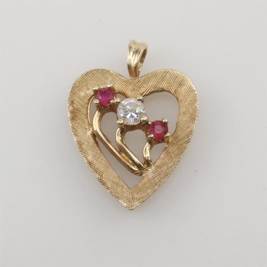 14kt Gold Cubic Zirconia And Ruby Heart Pendant