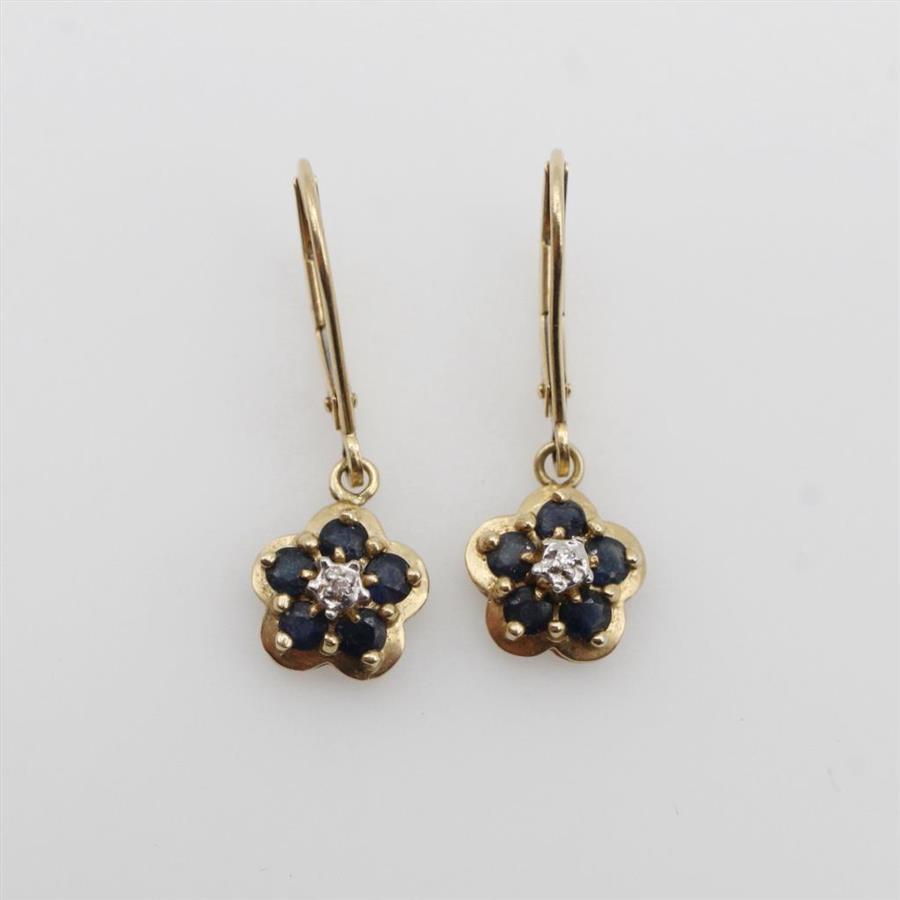 14kt Gold Diamond And Blue Stone Flower Earrings