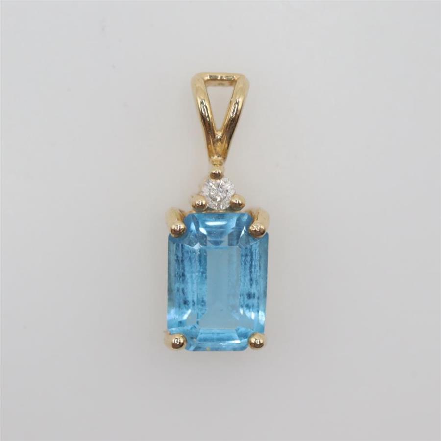 14kt Gold Diamond And Blue Topaz Pendant