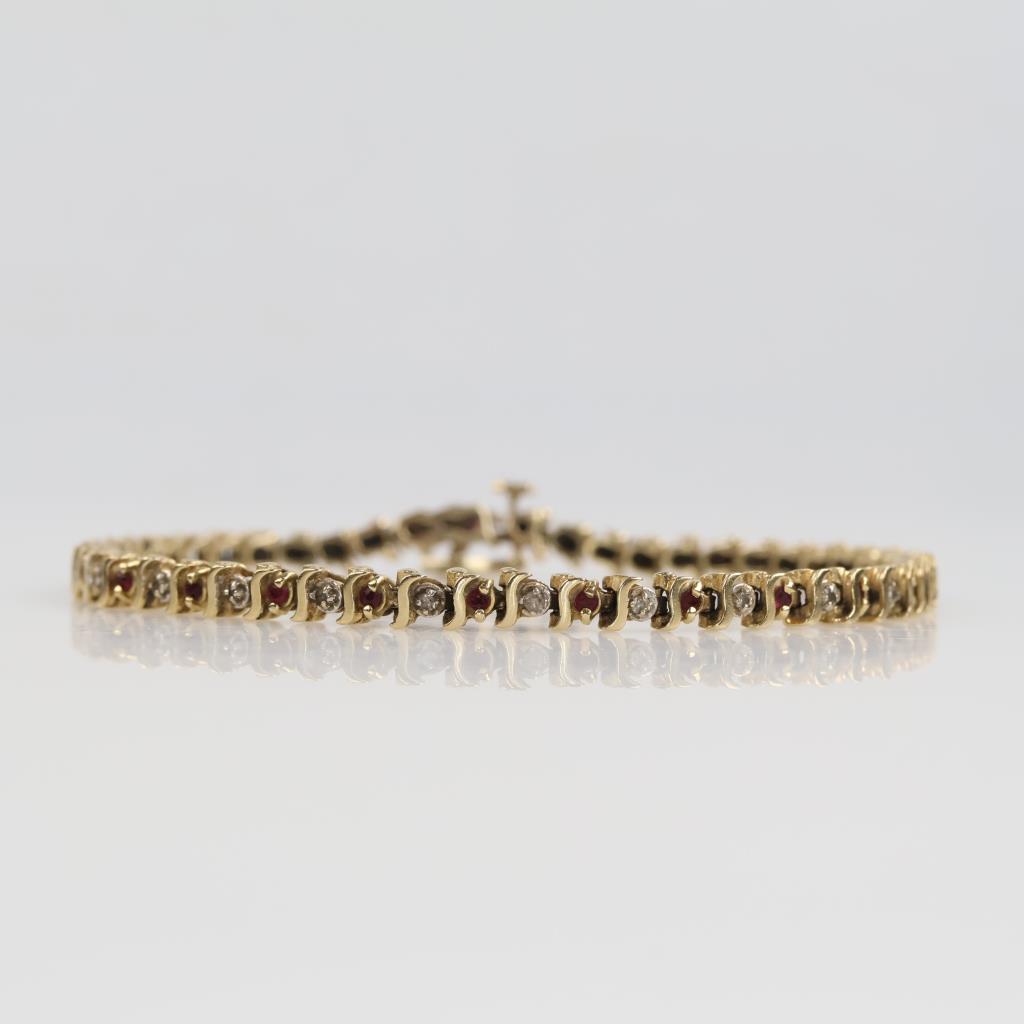 14kt Gold Diamond And Red Stone Bracelet