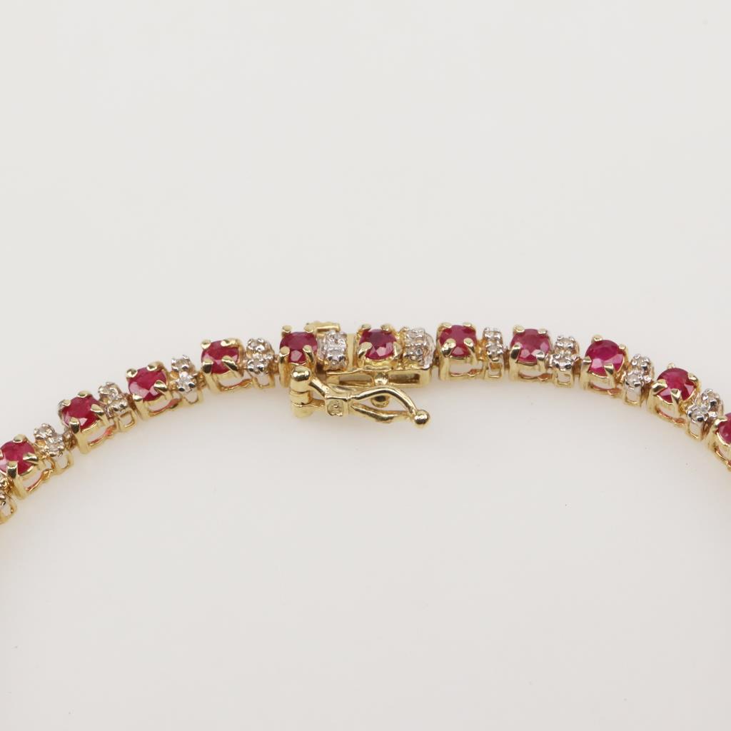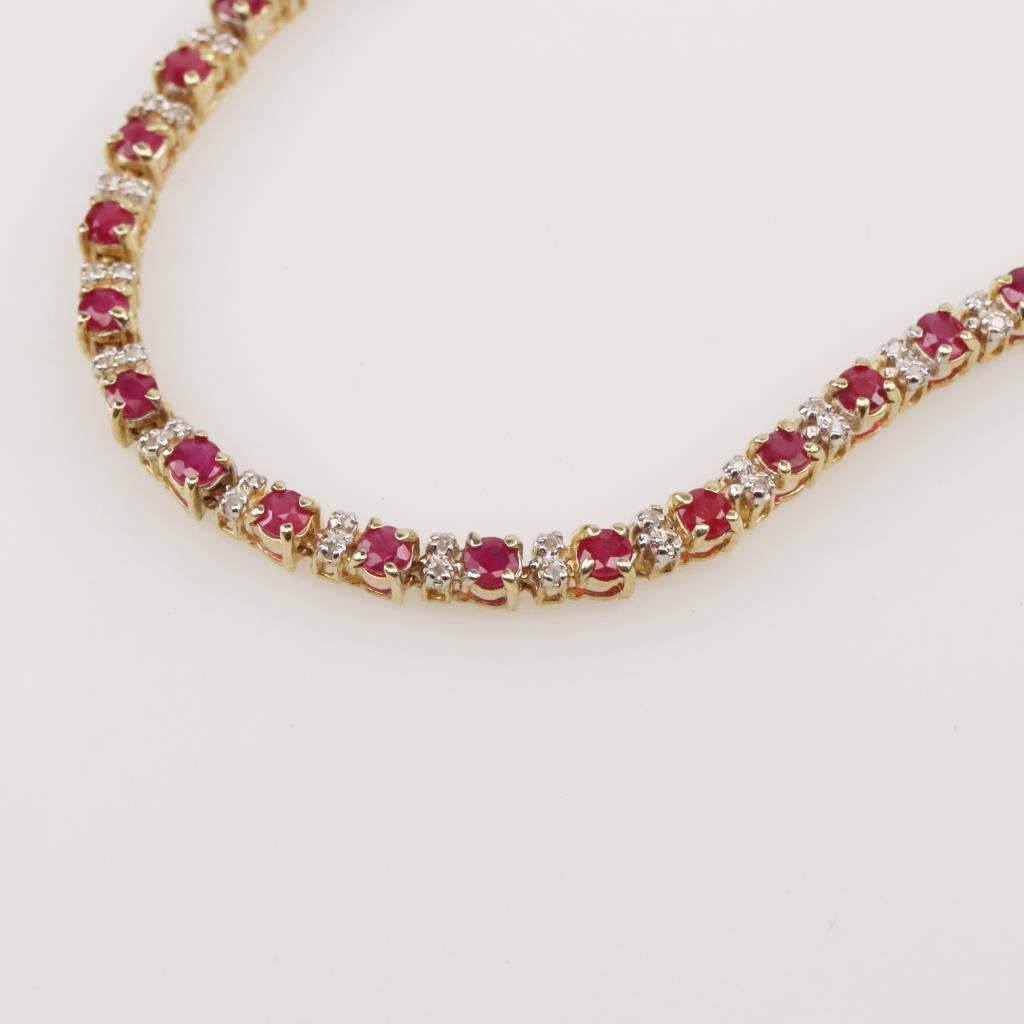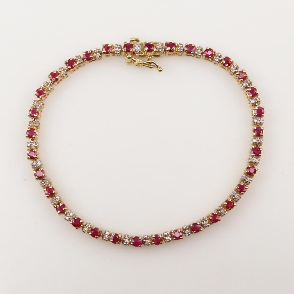 14kt Gold Diamond And Ruby Tennis Bracelet