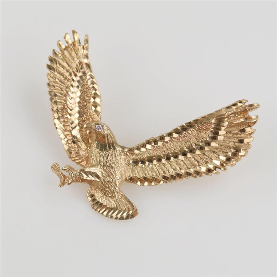 14kt Gold Diamond Eye Eagle Pendant -Evaluated By Our Certified Gemologist-AGS/GIA