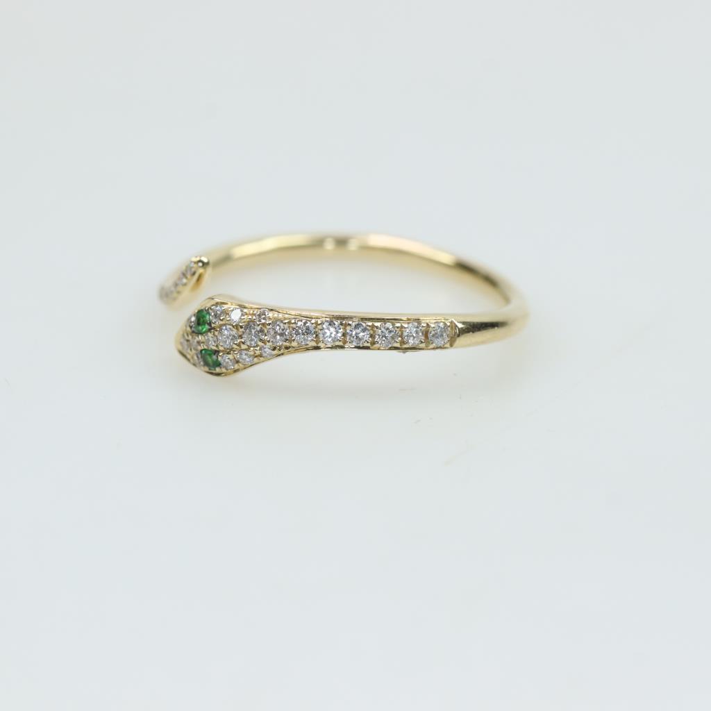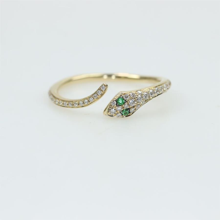 14kt Gold Diamond Green Stone Accent Snake Ring