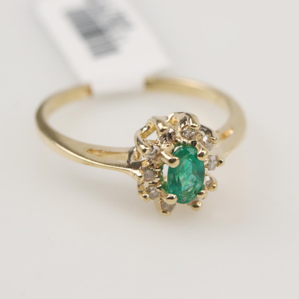14kt Gold Diamond Green Stone Ring