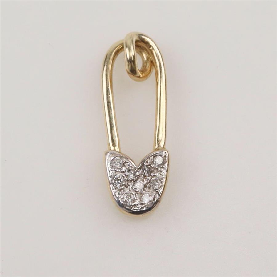 14kt Gold Diamond Safety Pin Pendant