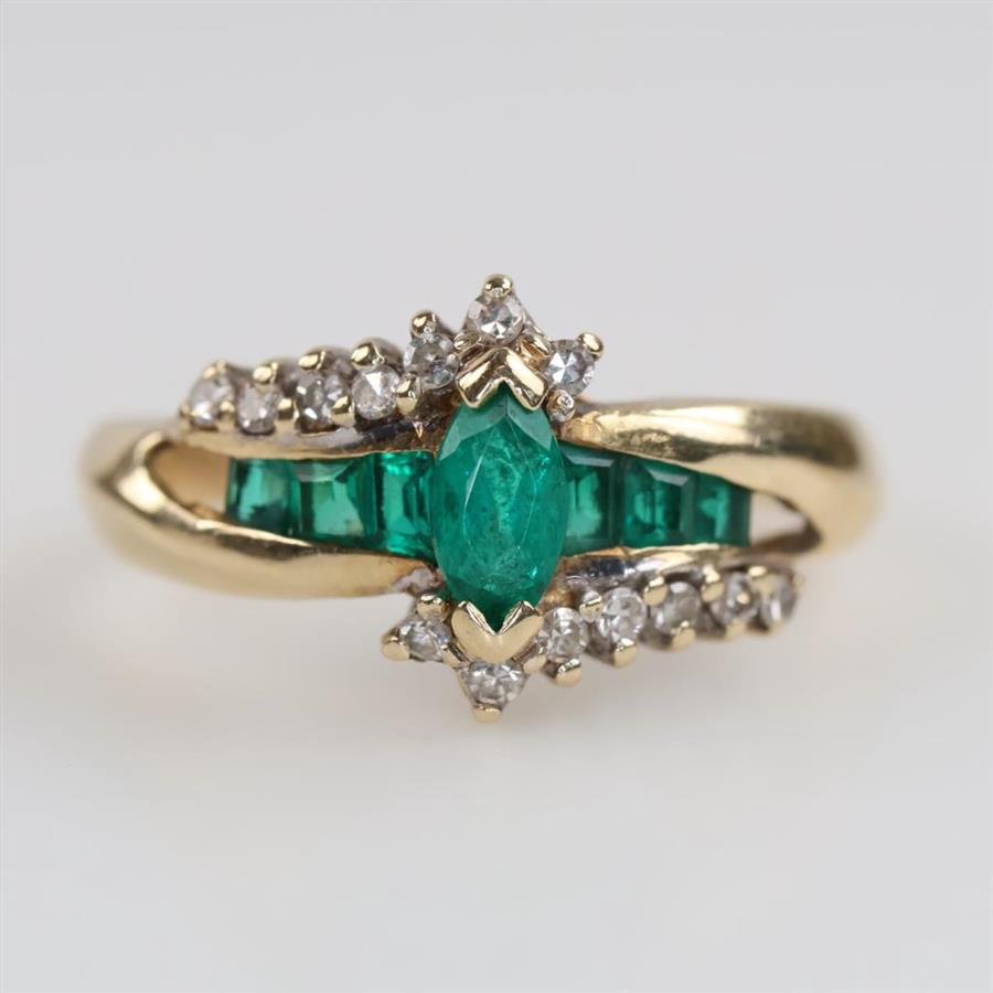 14kt Gold Green Emerald Diamond Accent Ring