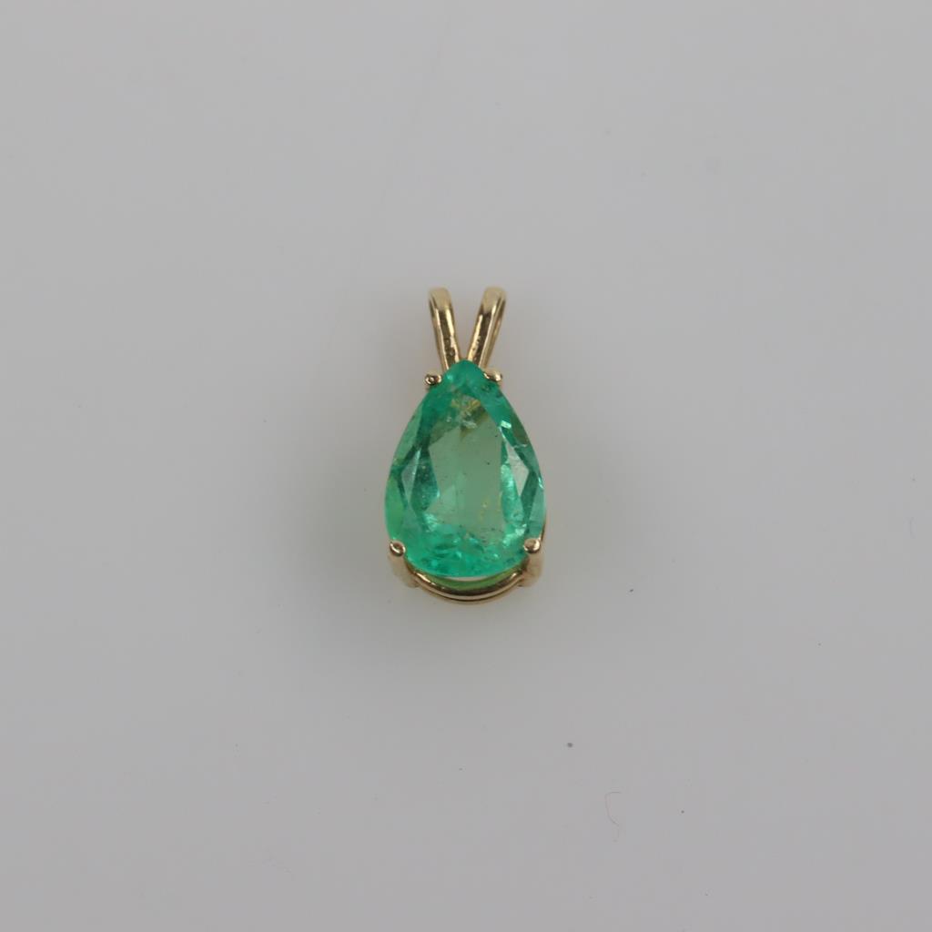 14kt Gold Green Emerald Teardrop Pendant
