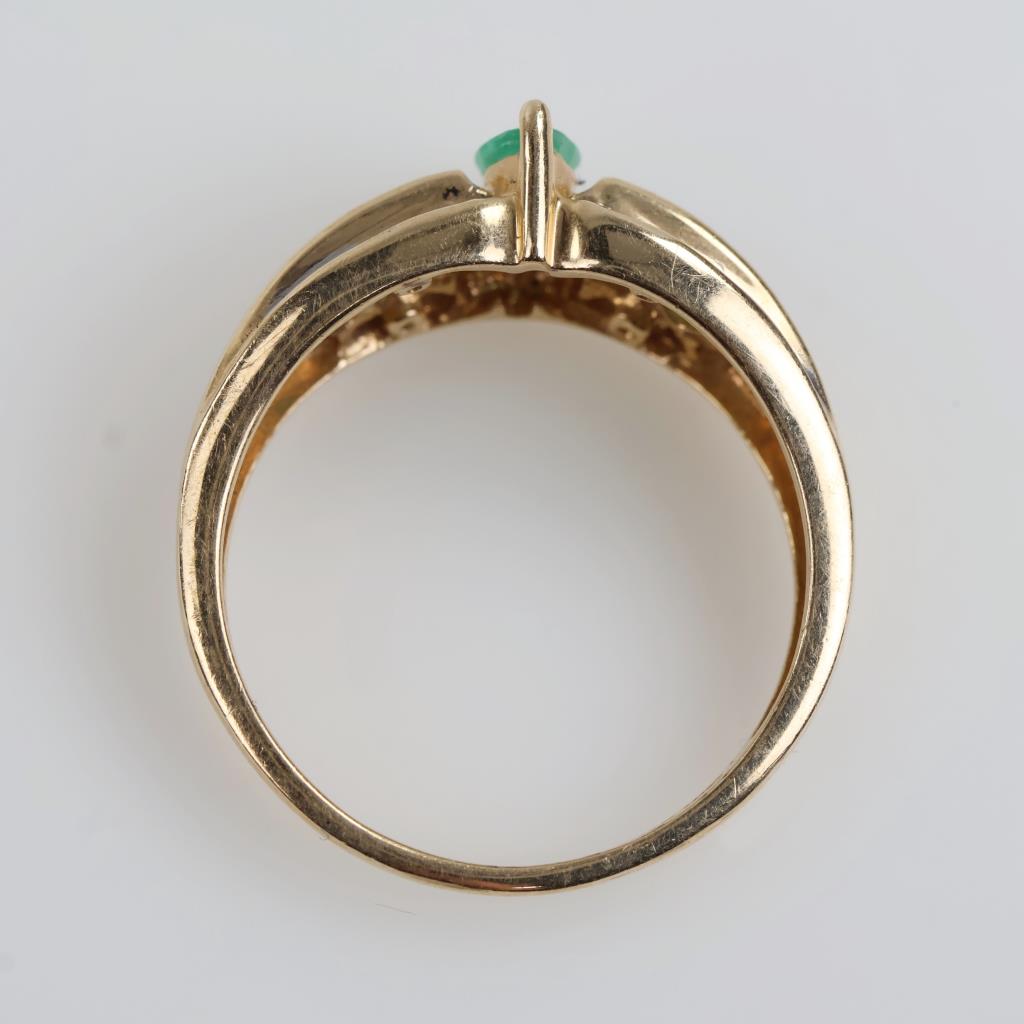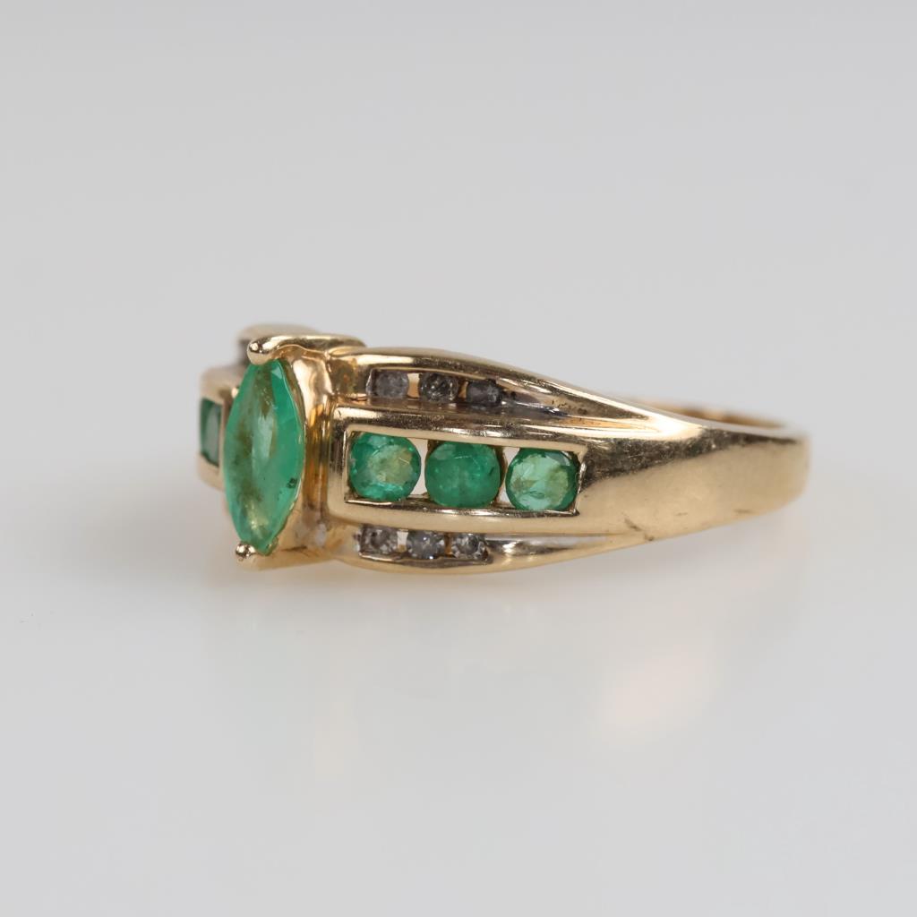 14kt Gold Green Emeralds & Diamond Accent Ring