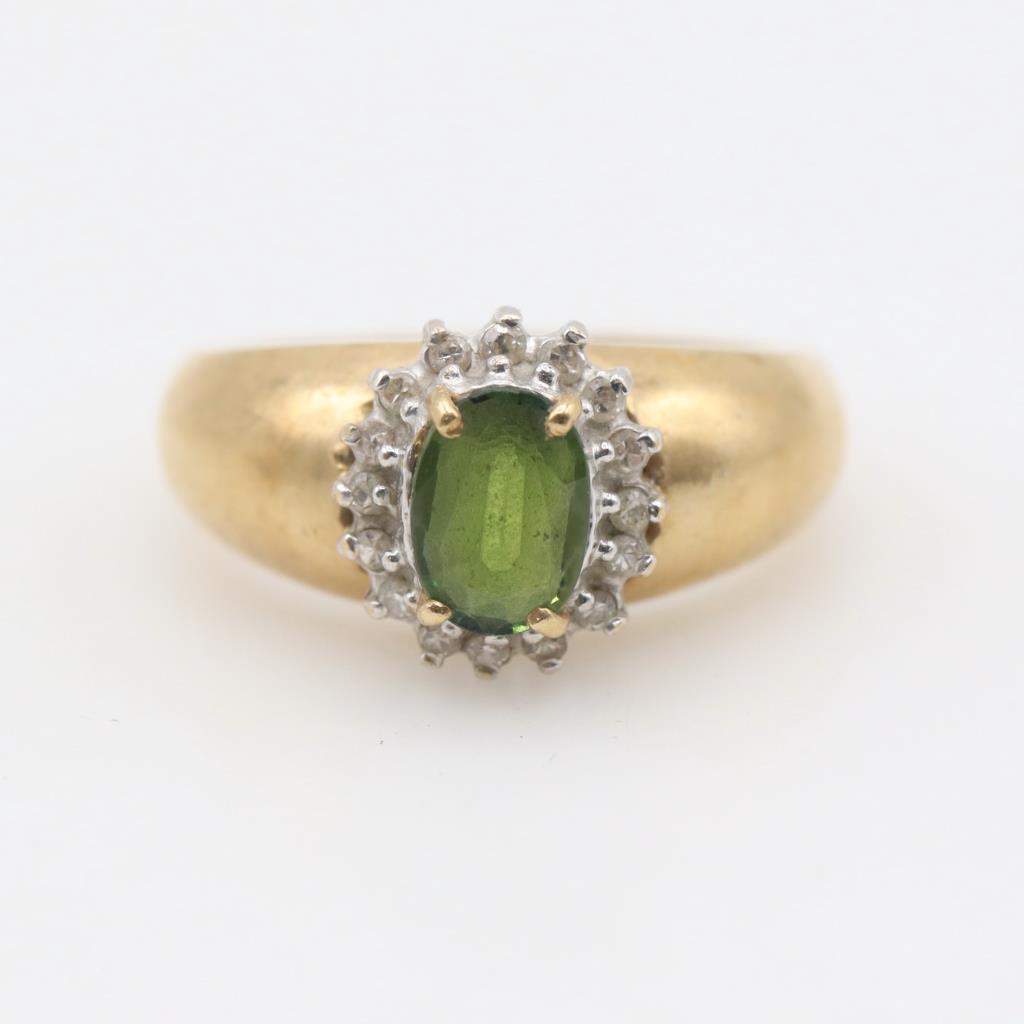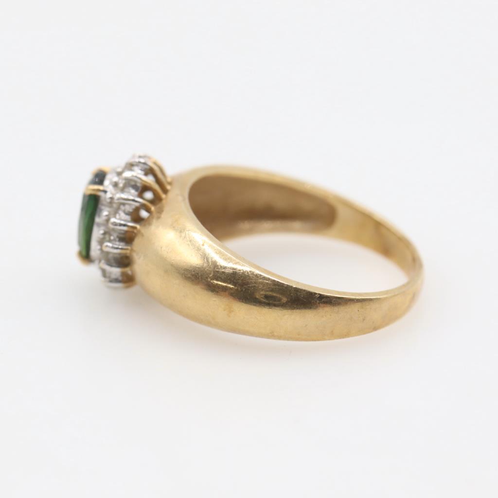 14kt Gold Green Stone Clear Stone Accent Ring