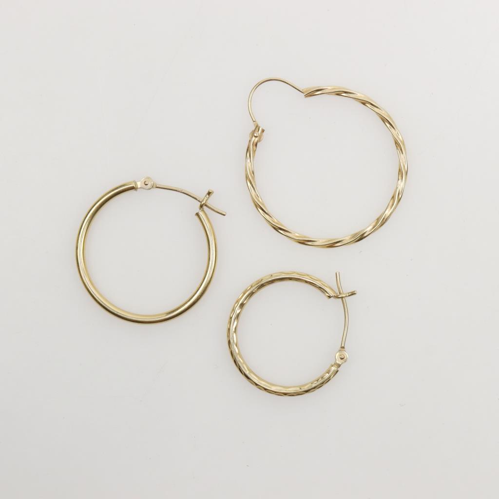 14kt Gold Hollow Mismatch Hoop Earrings, 3 Pieces