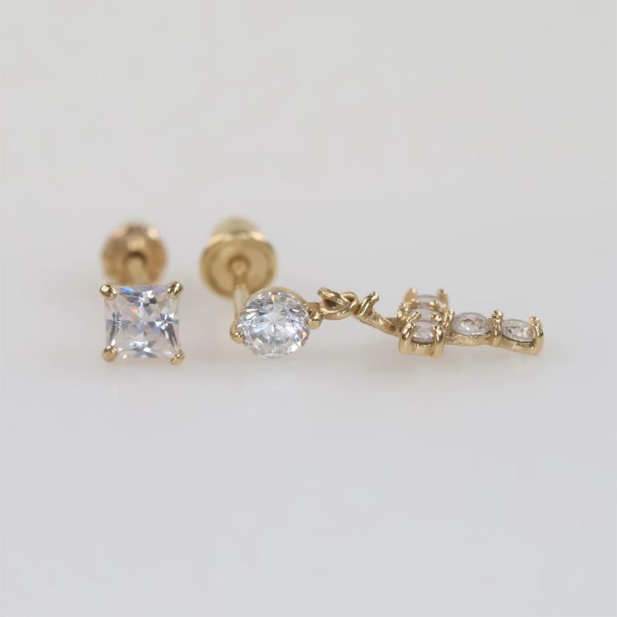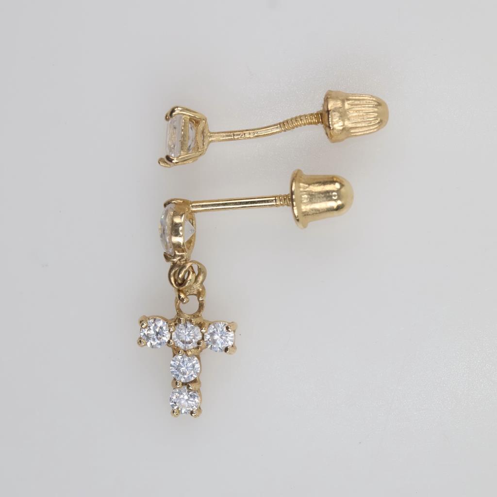 14kt Gold Mismatched Earrings, 2 Pieces