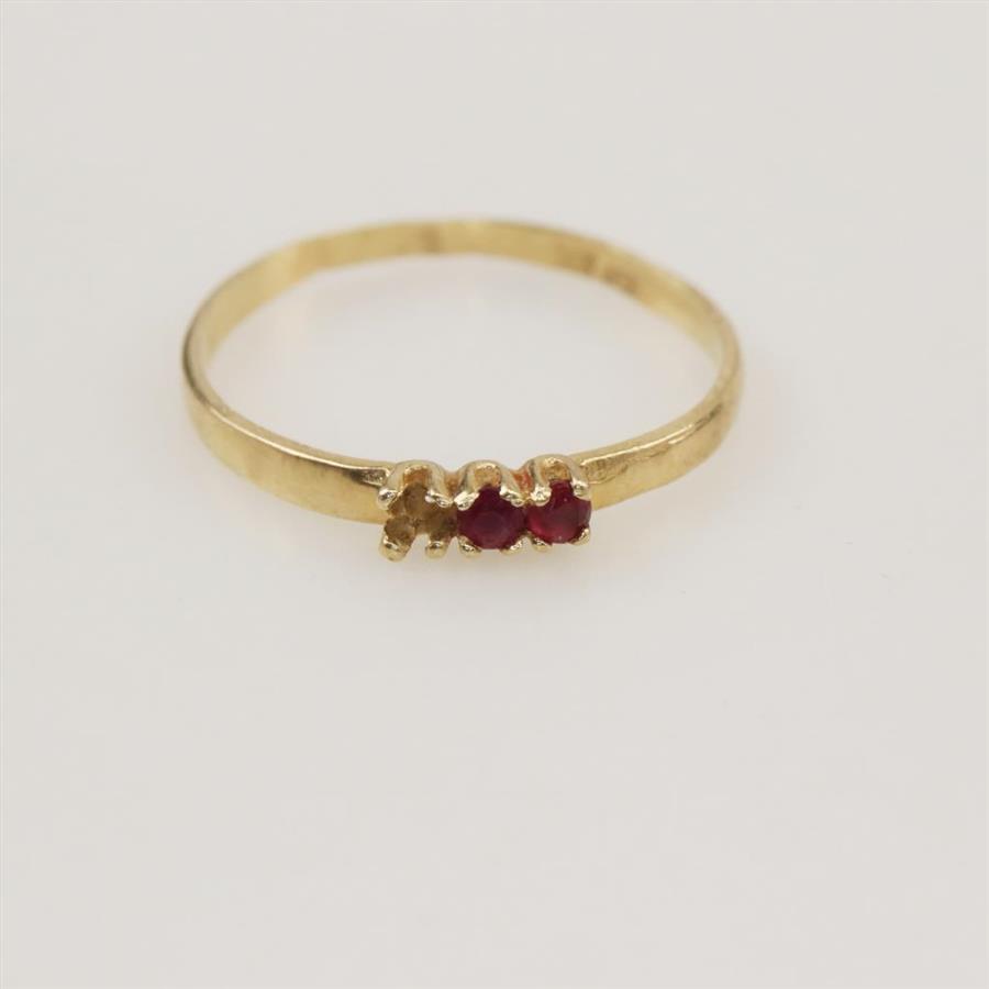 • 0.06ct TW Radiant Square Cut Synthetic Ruby (2 Stone, 1 Missing)