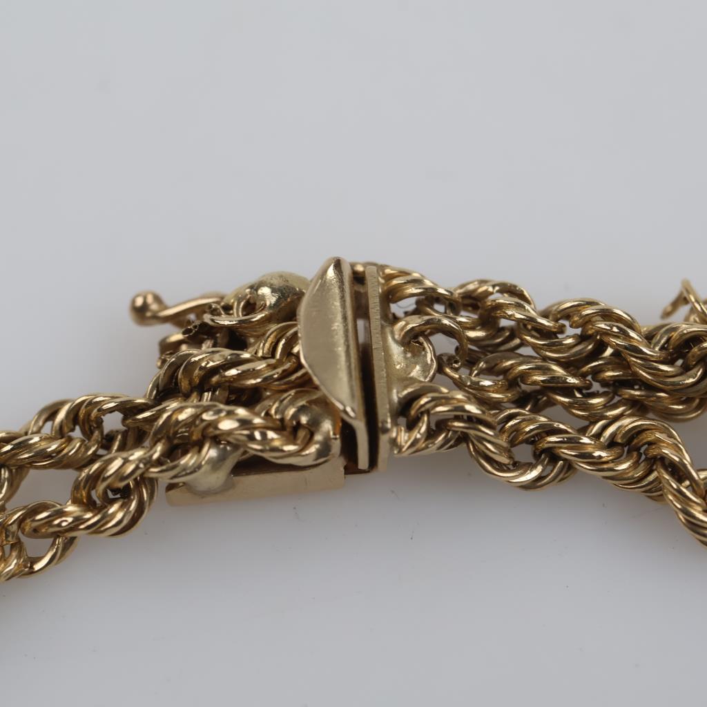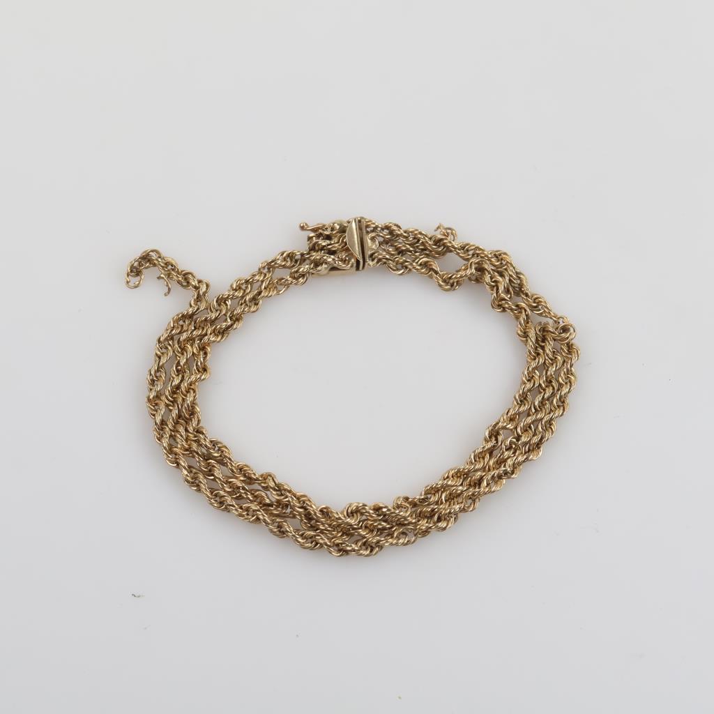 14kt Gold Triple Strand Hollow Rope Chain Bracelet