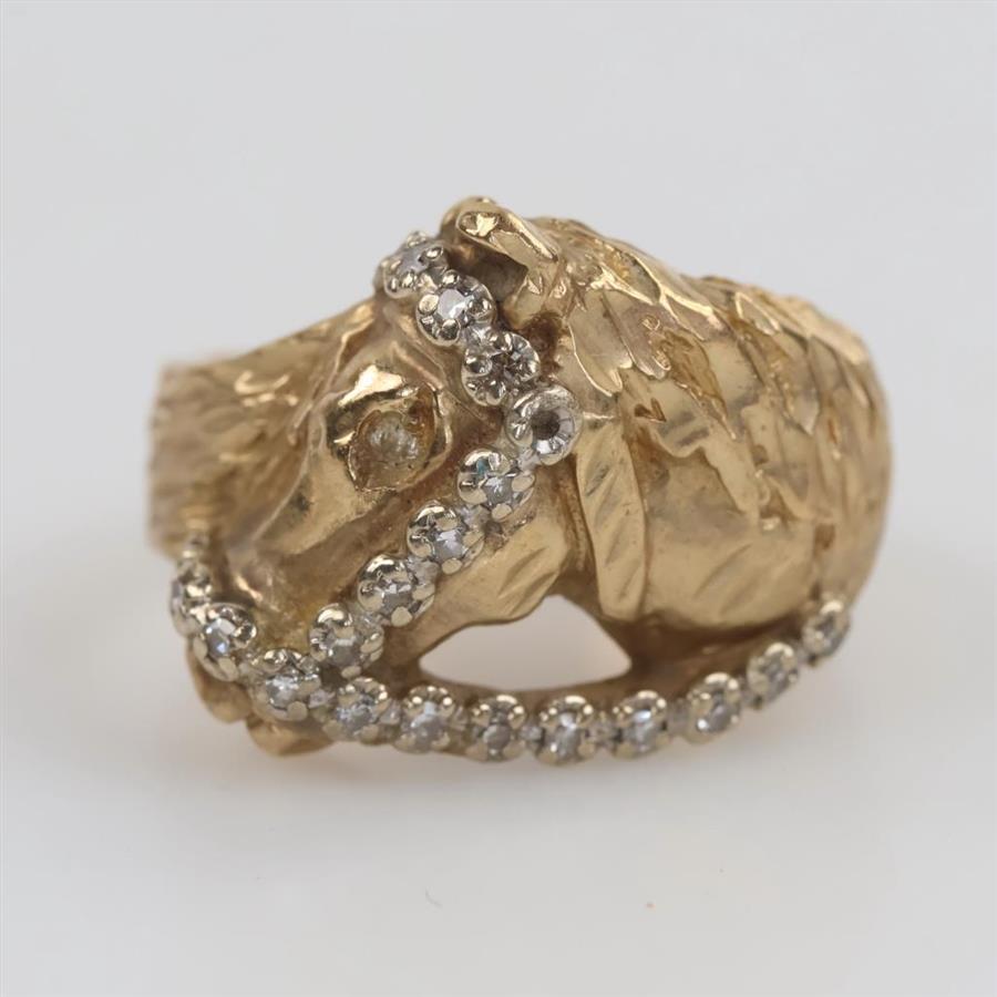 14kt Gold Two-tone Diamond Horse Bridle Ring