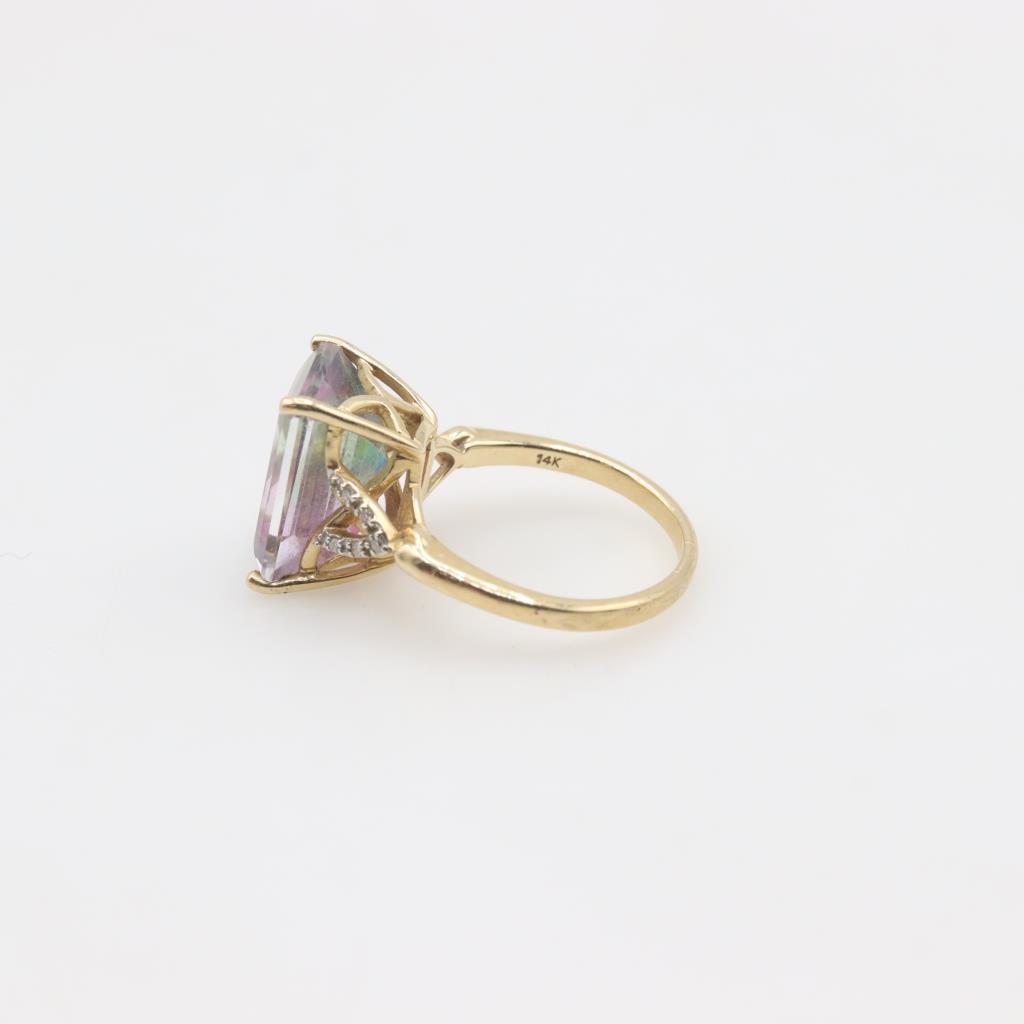 14kt Gold Watermelon Tourmaline Diamond Accent Ring