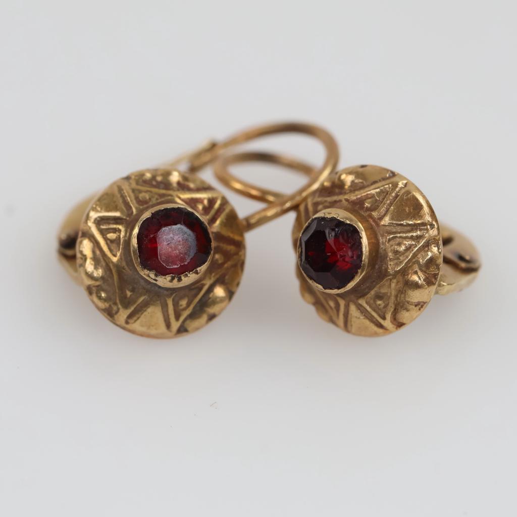 14kt GP Red Stone Drop Earrings