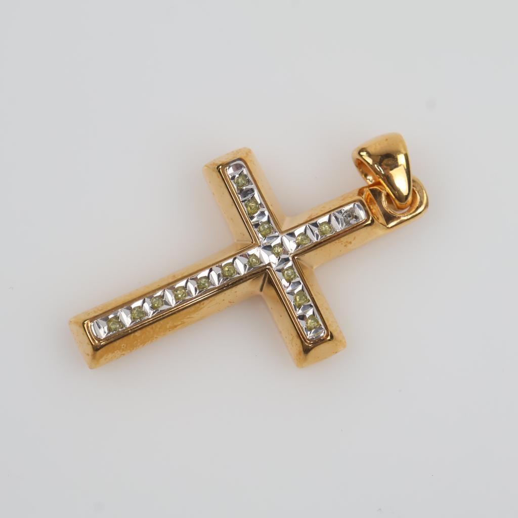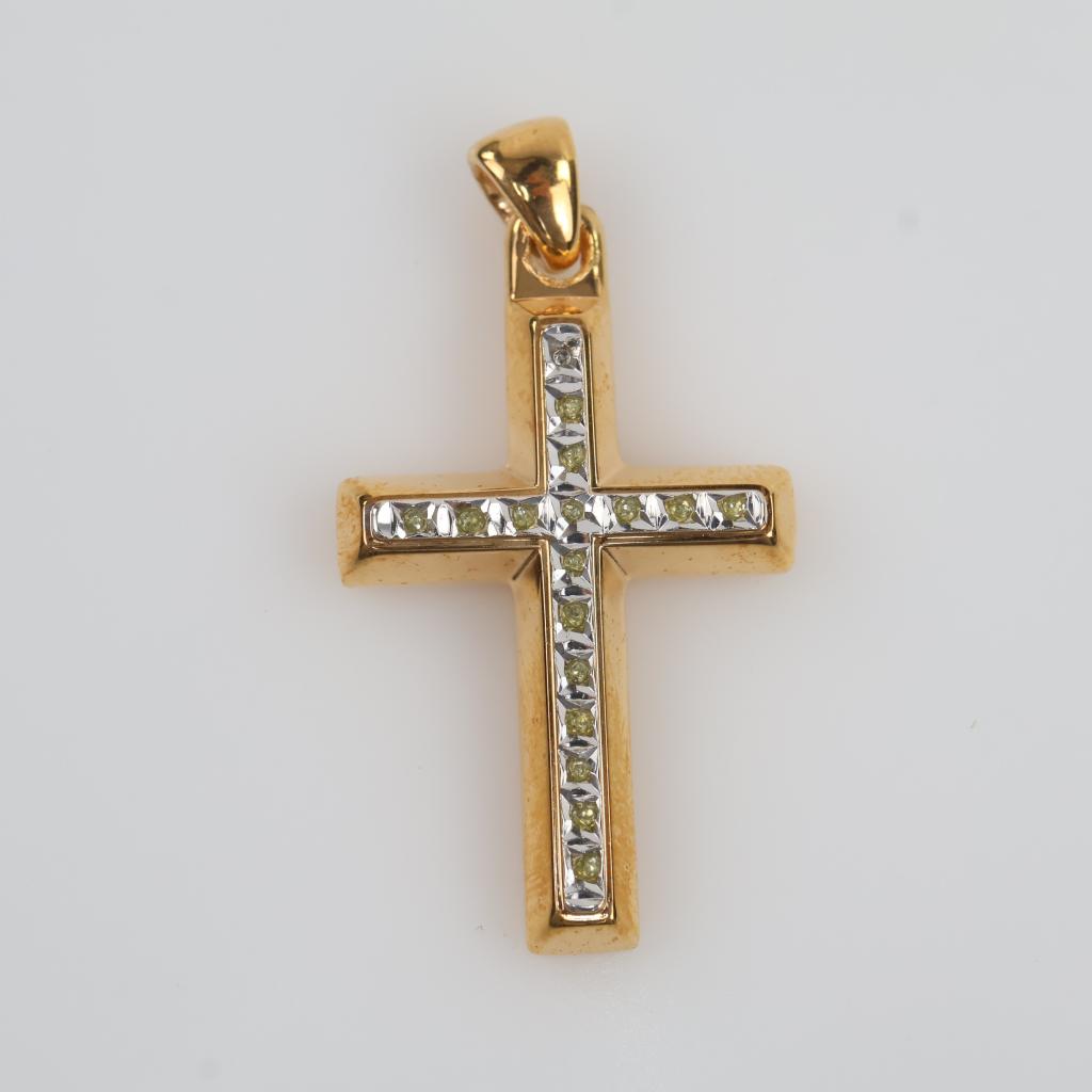 14kt GP Yellow Stone Cross Pendant