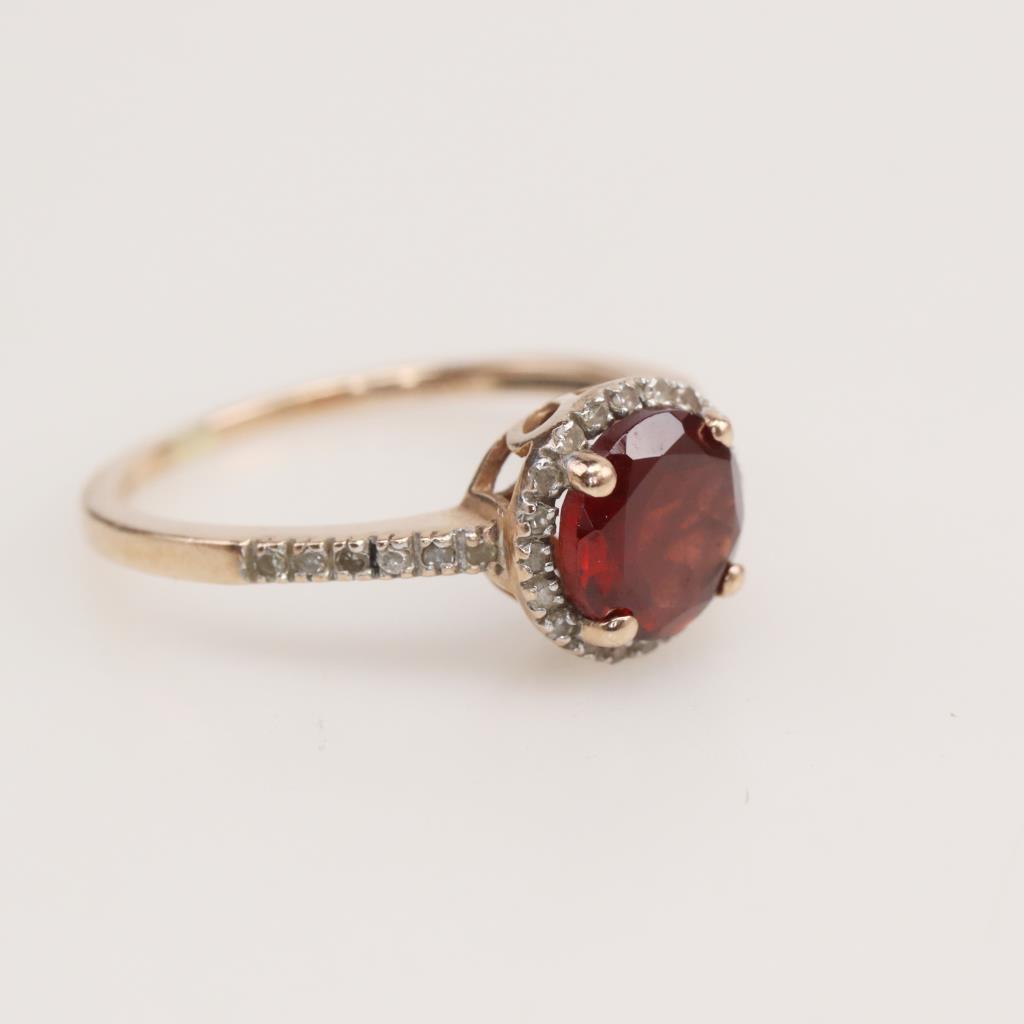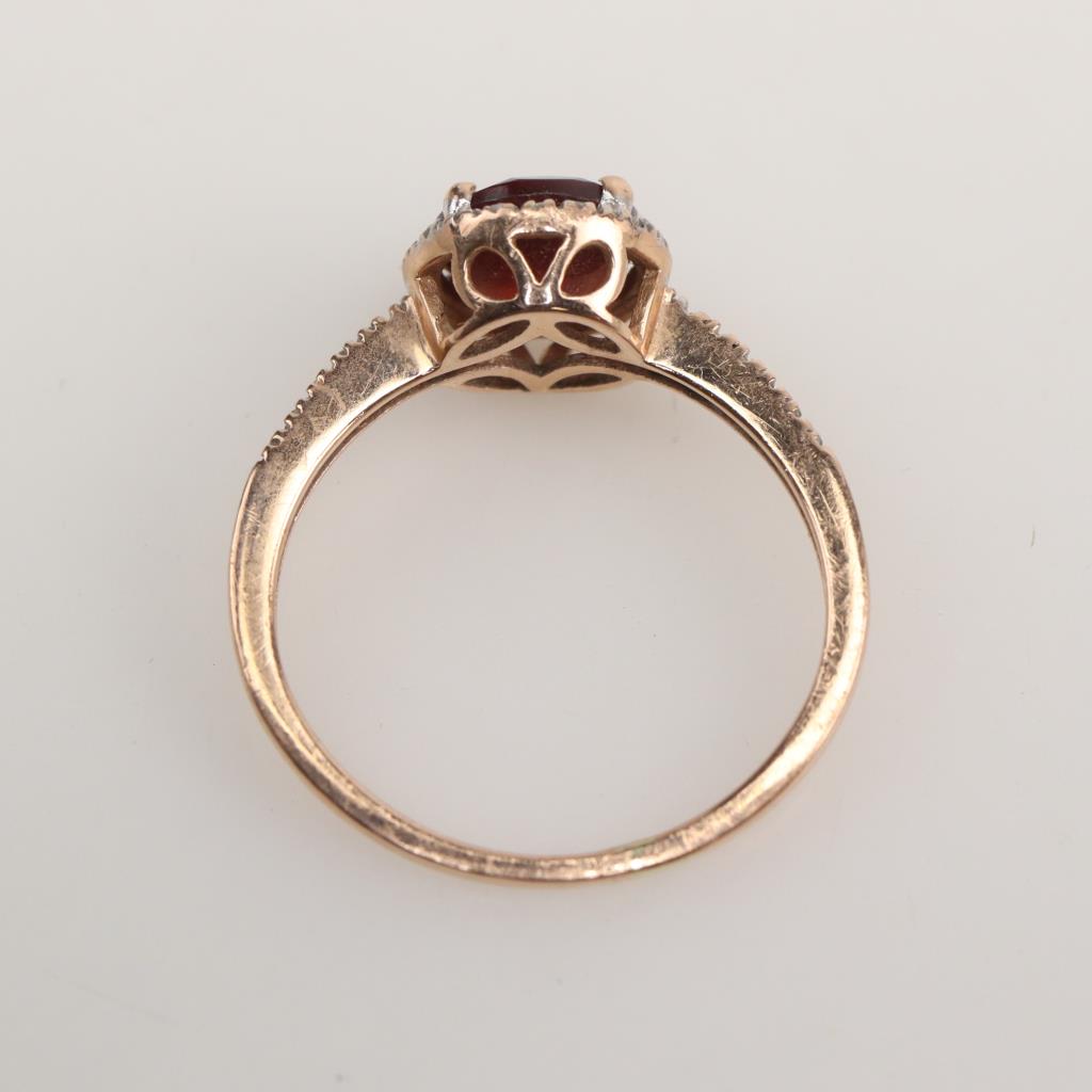 14kt Rose Gold Red Stone Diamond accent Ring