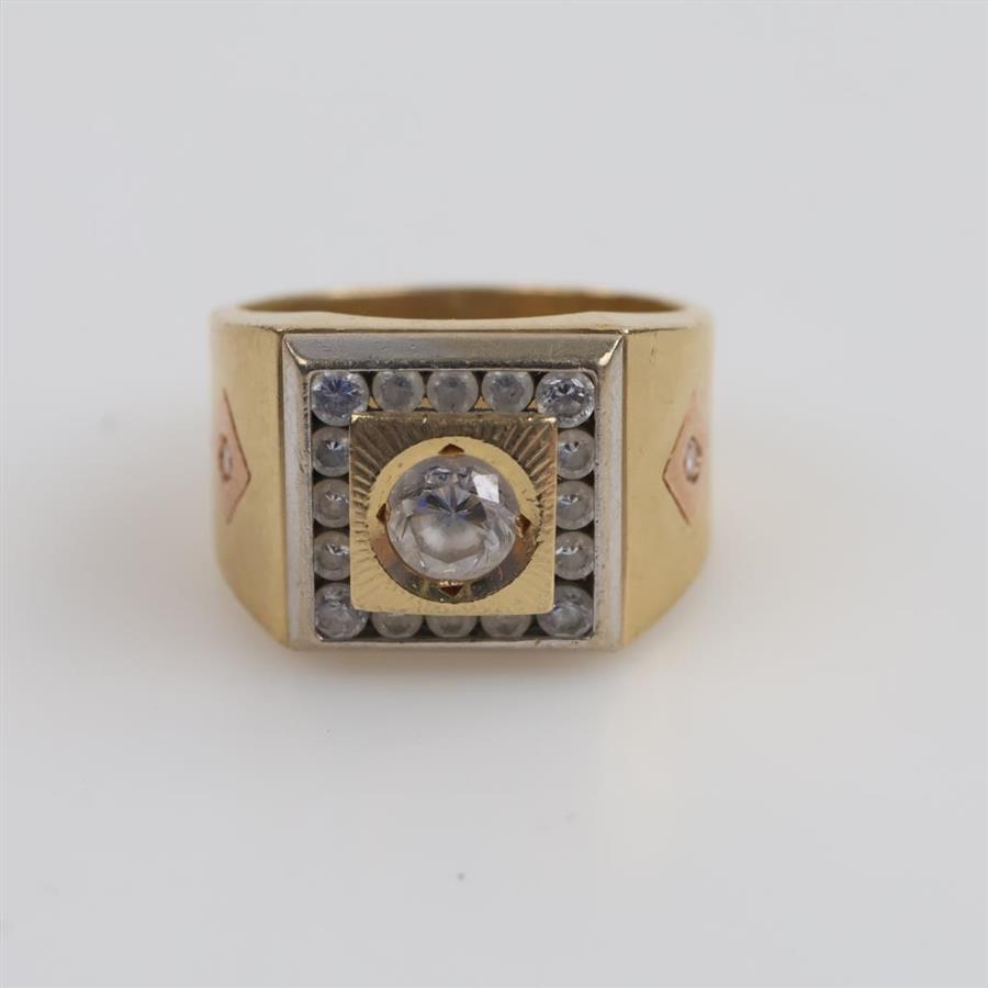 14kt Tri Colored Gold Clear Stone Ring