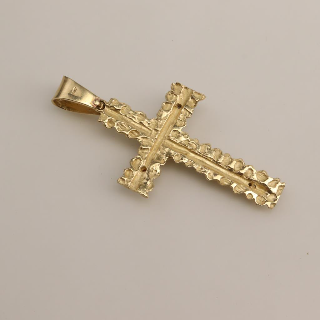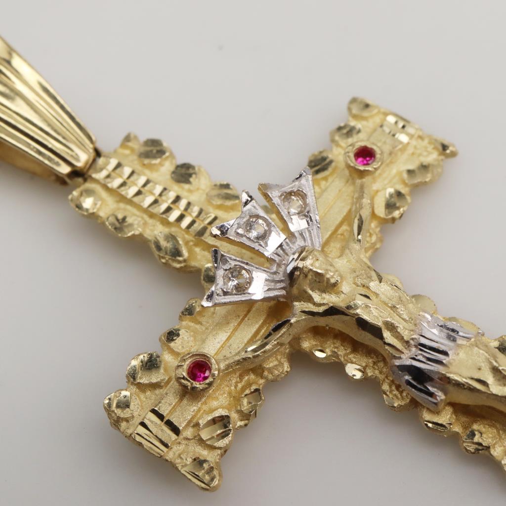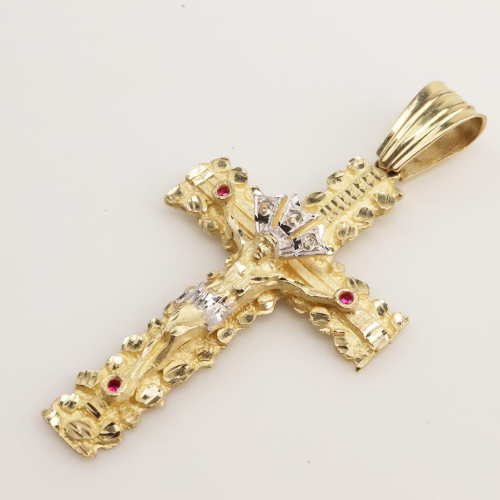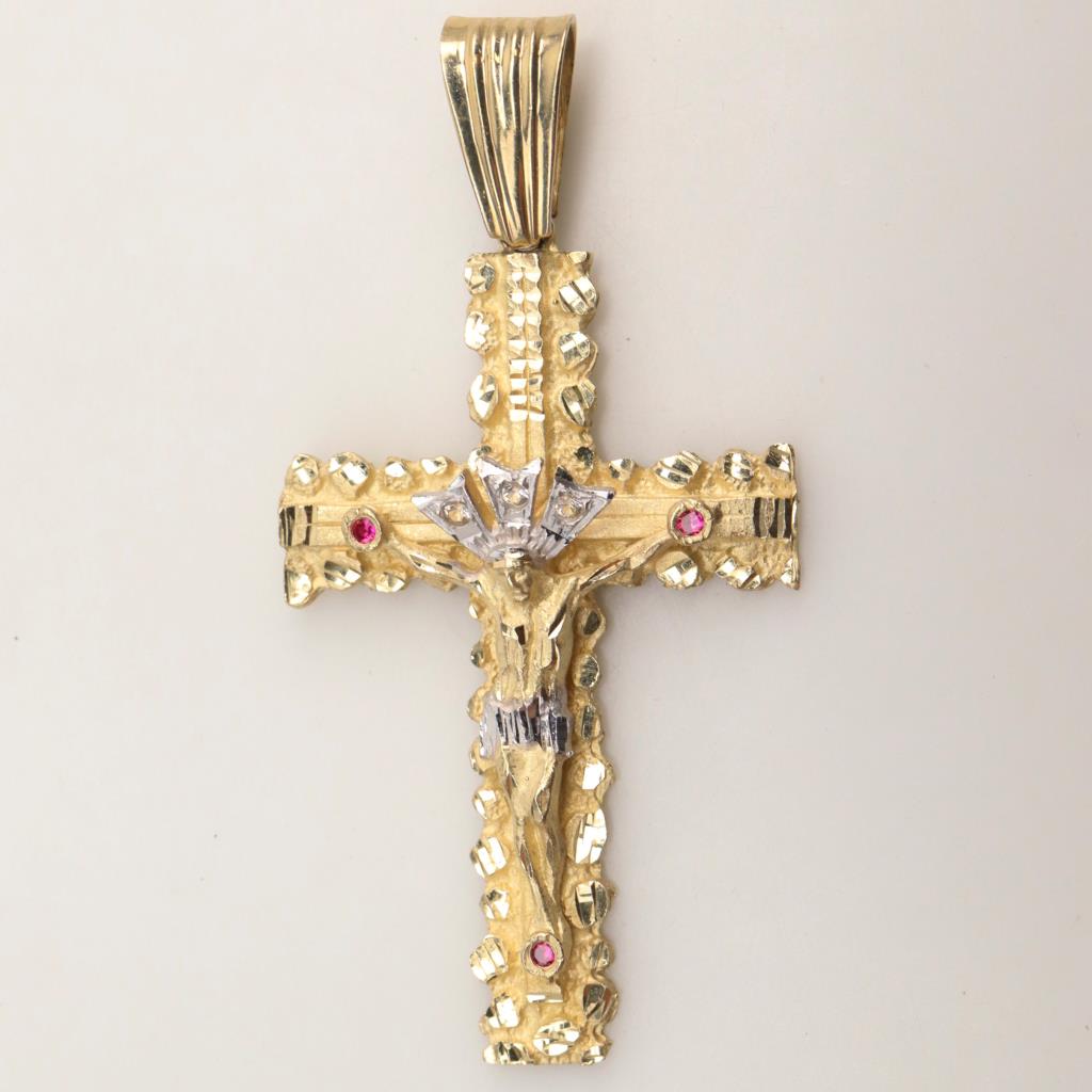 14kt Two Tone Gold Clear Stone Ruby Cross Pendant