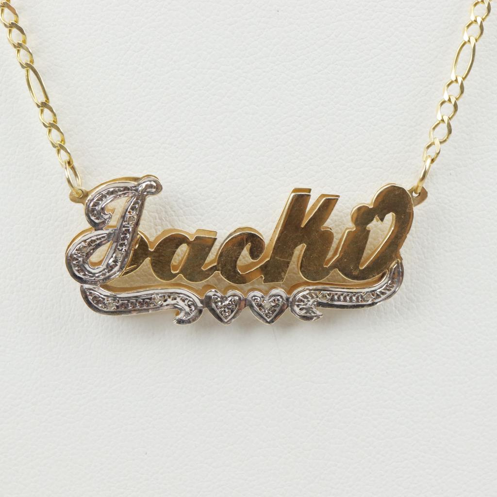 14kt Two Tone Gold Diamond Accent Name Plate Necklace