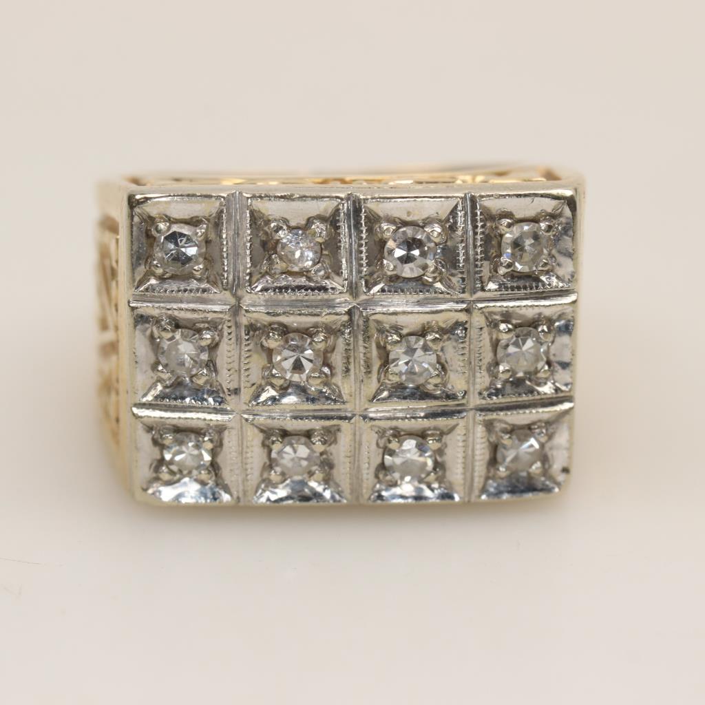 14kt Two Tone Gold Diamond Signet Ring