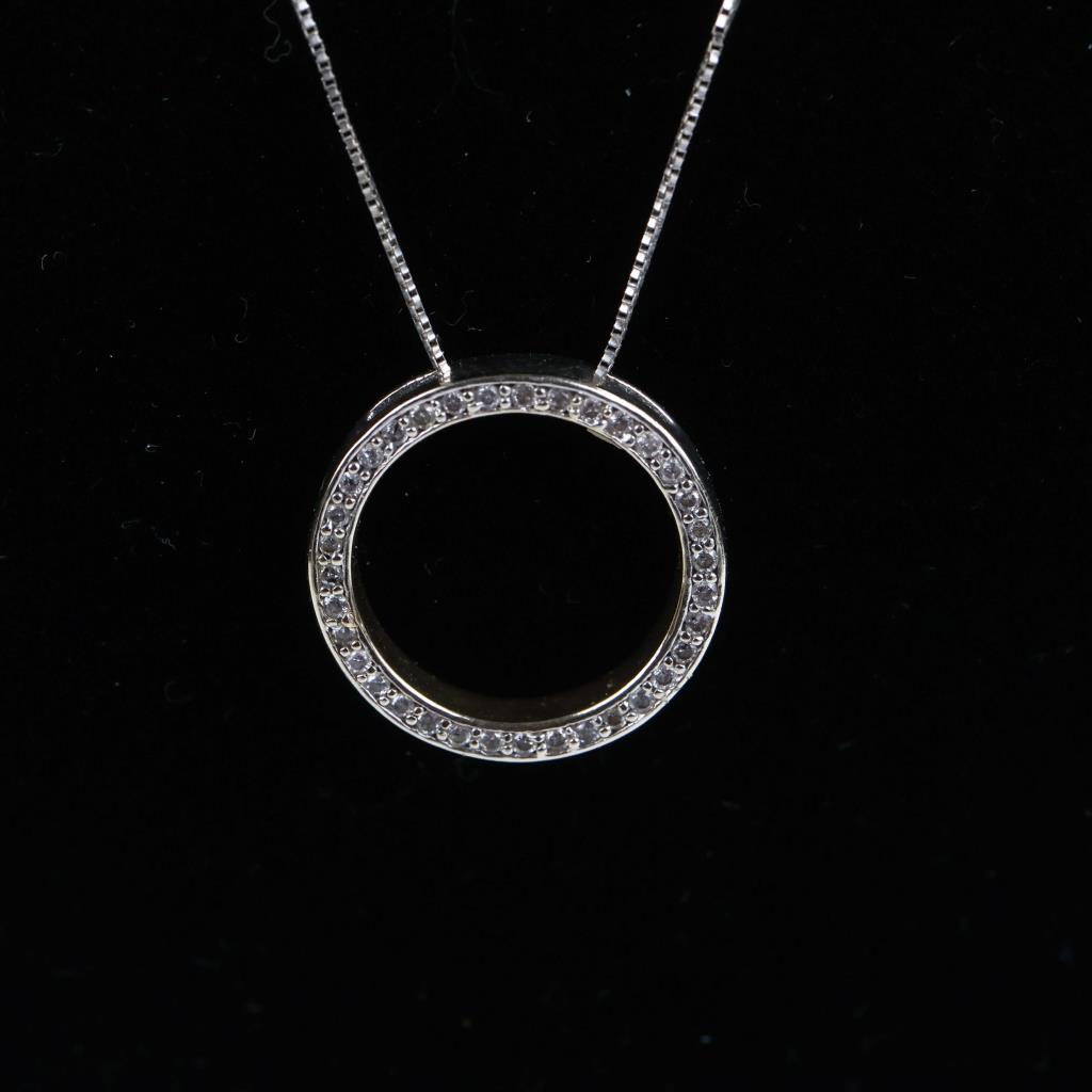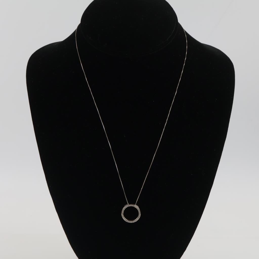 14kt White Gold Diamond Circle Pendant And Chain