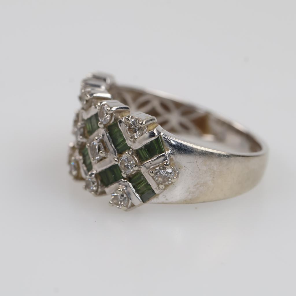 14kt White Gold Diamond Green Stone Ring
