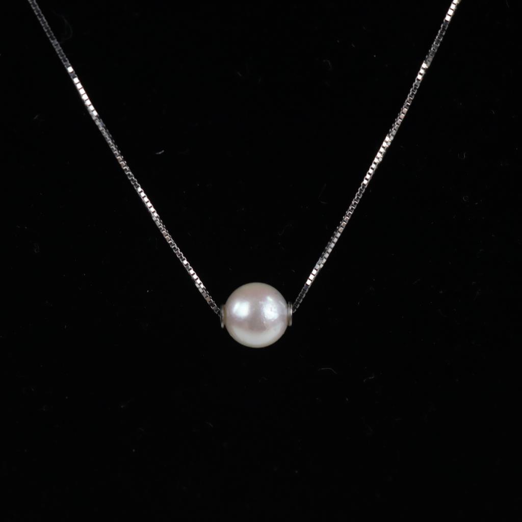 14kt White Gold Floating Pearl Box Chain Necklace