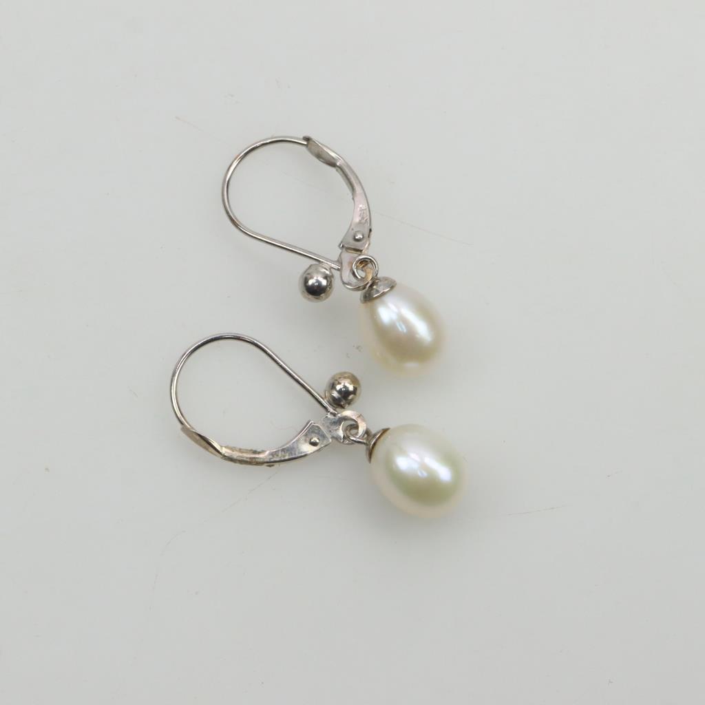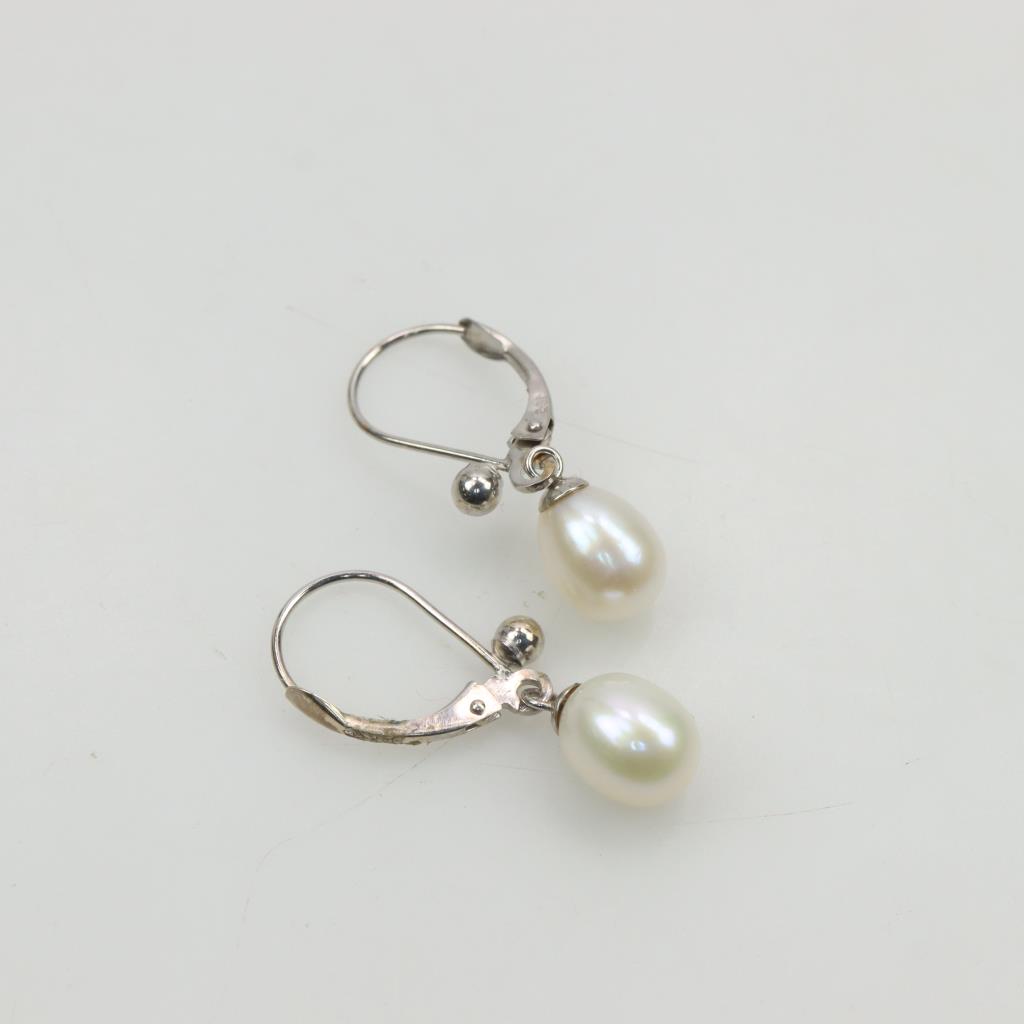 14kt White Gold Pearl Earrings