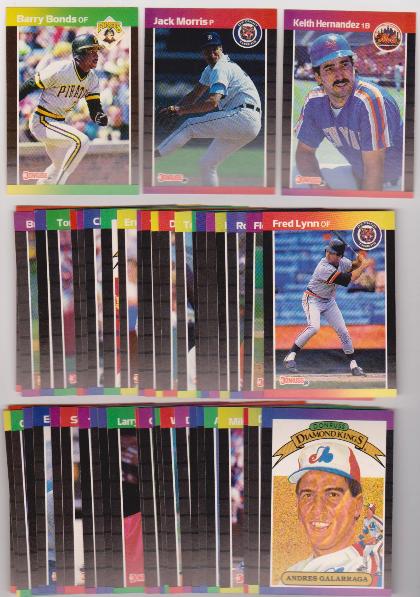 This is a lot of 150 assorted 1989 Donruss baseball cards. Most of these are in Near Mint or better condition.  Some will be a little higher or lower grade.  This lot includes Barry Bonds, Jack Morris, Keith Hernandez, Fred Lynn, Andres Galarraga, and more.