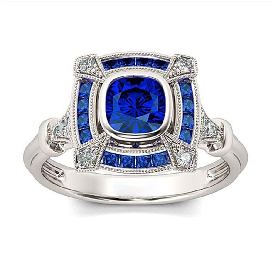 1.50ctw Blue Sapphire 18k White Gold Overlay Ring Size 7