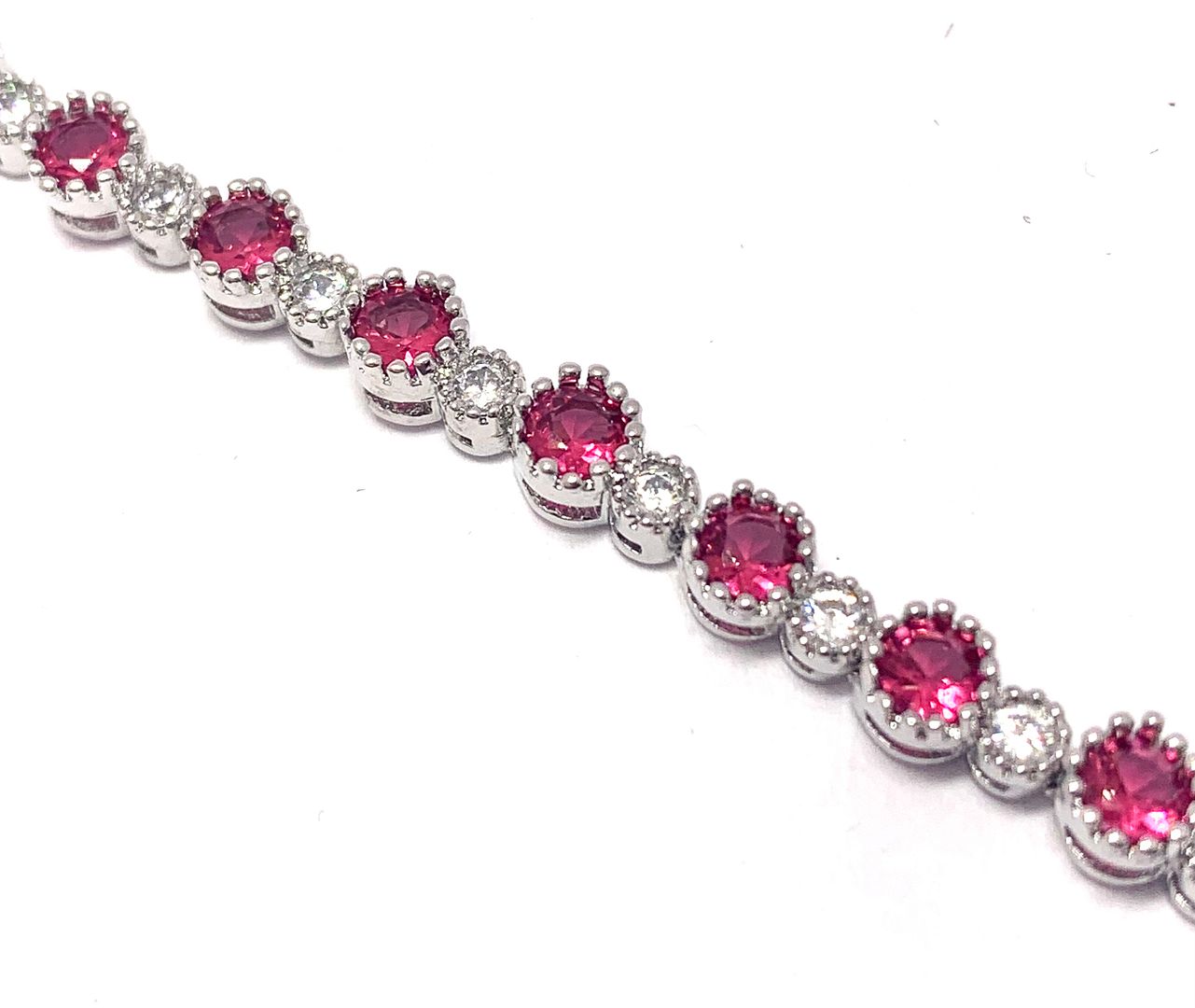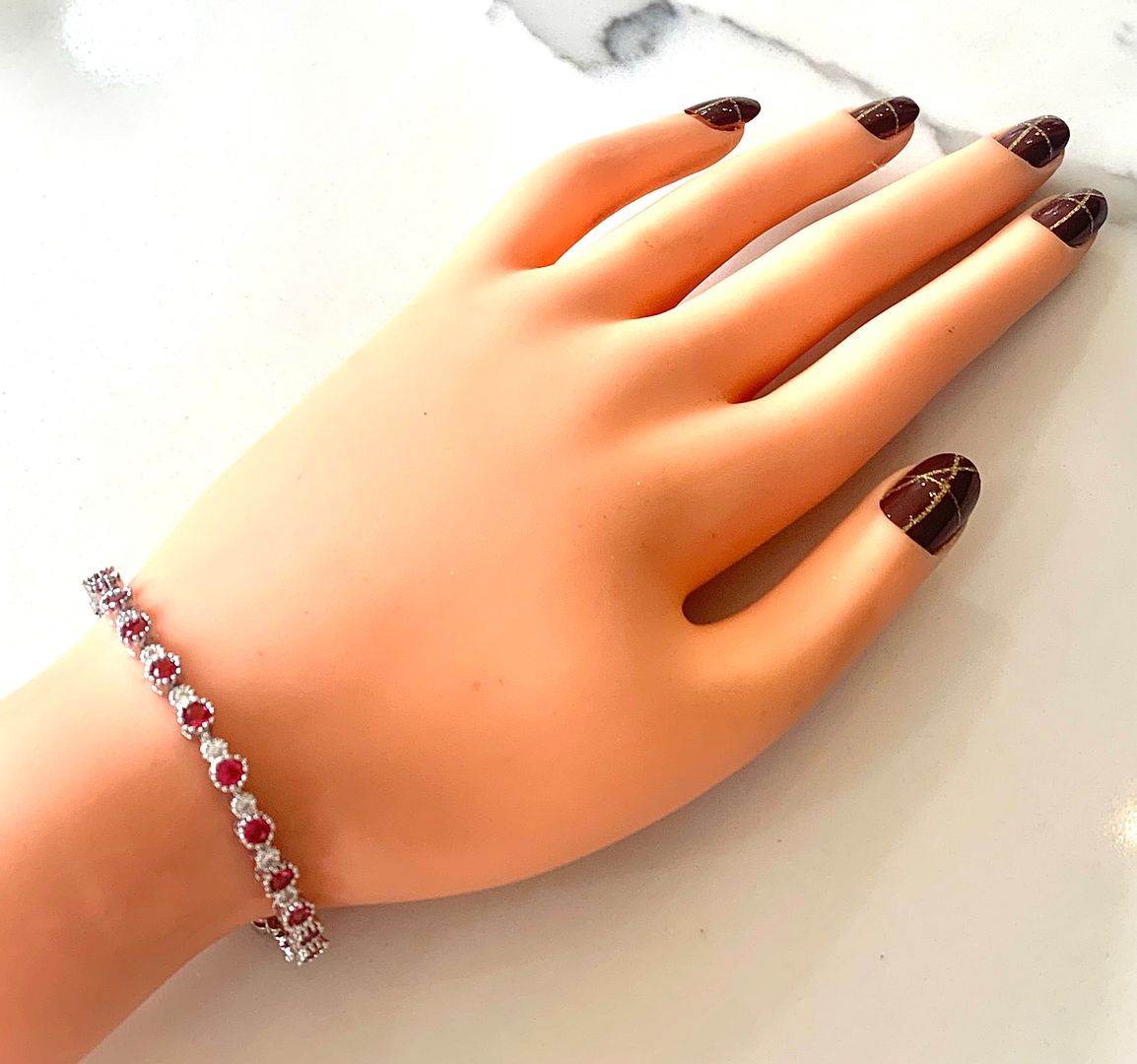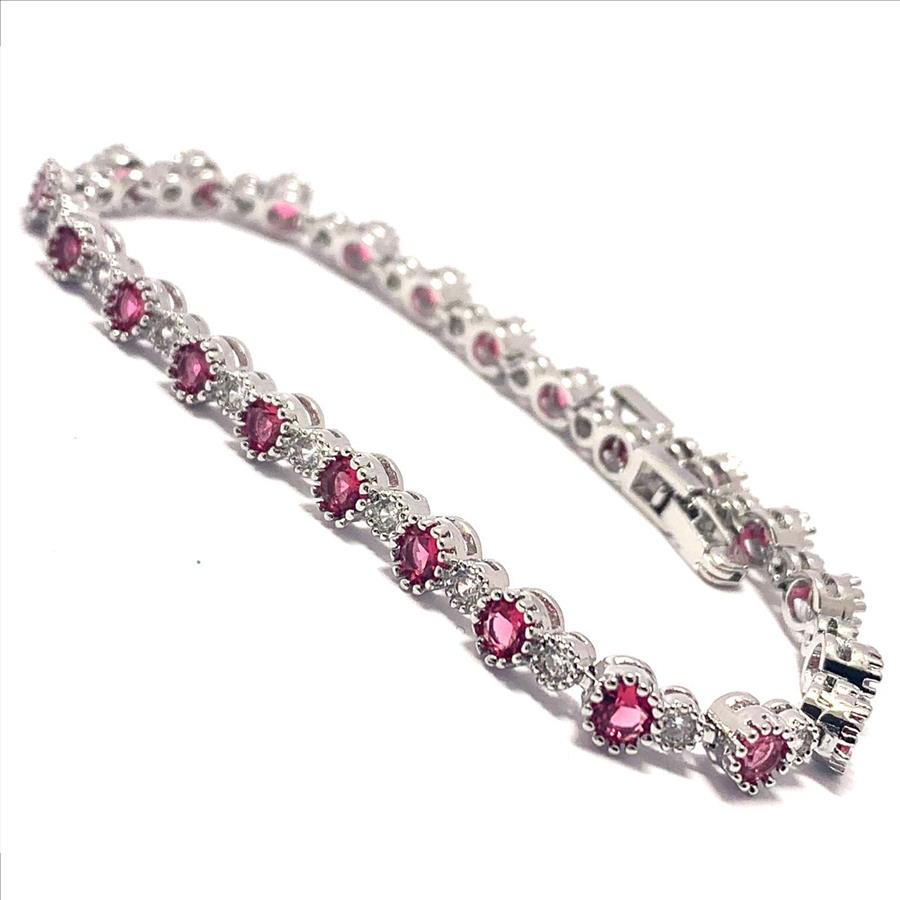 $159 Retail 5.75ctw Round Brilliant Ruby & Diamonique Diamond 7” Tennis Bracelet