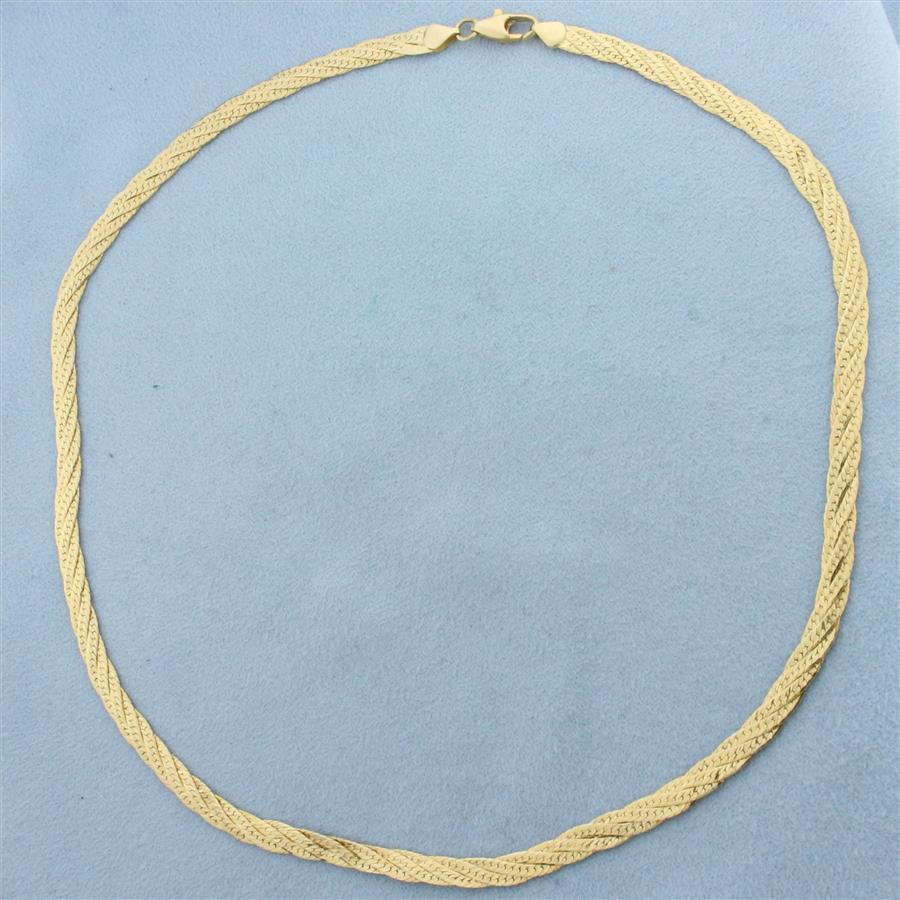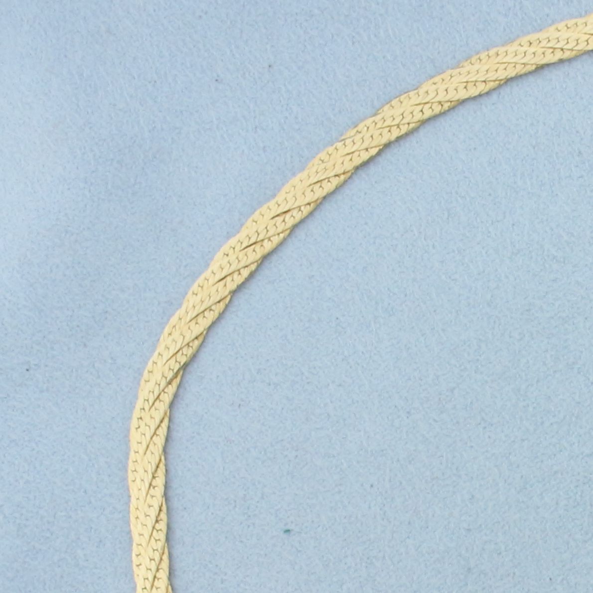 16 Inch Braided Herringbone Link Choker Necklace in 14k Yellow Gold