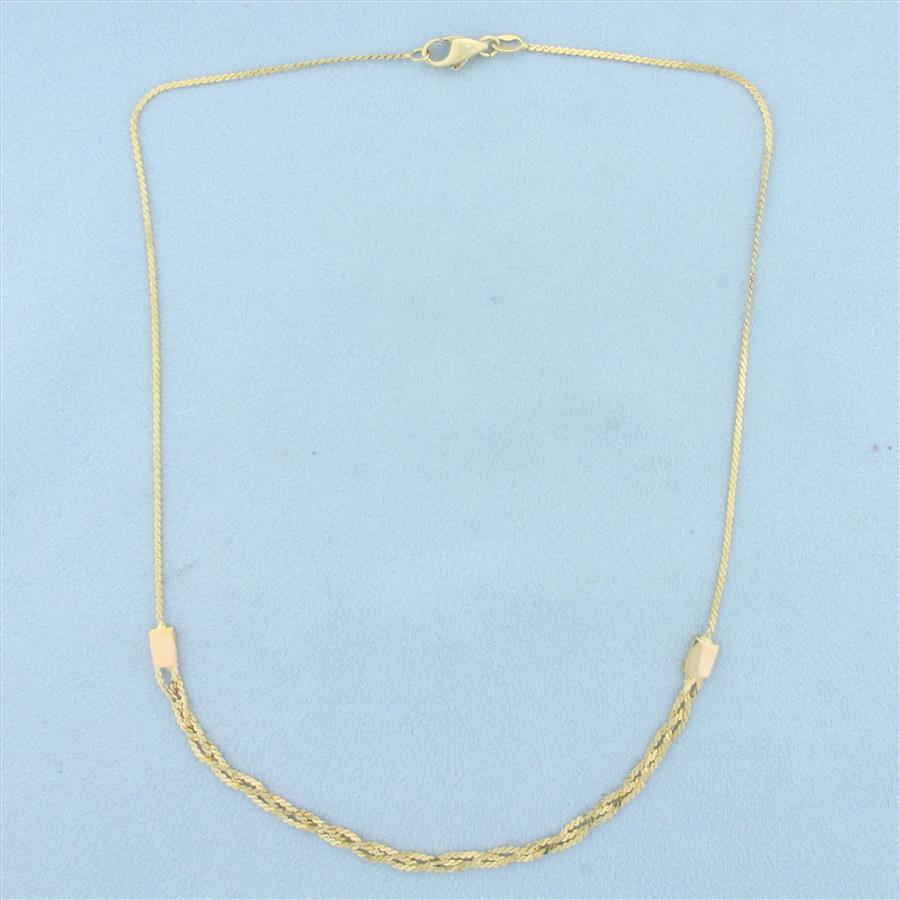 16 Inch Italian Braided Serpentine Link Necklace in 18k Yellow Gold