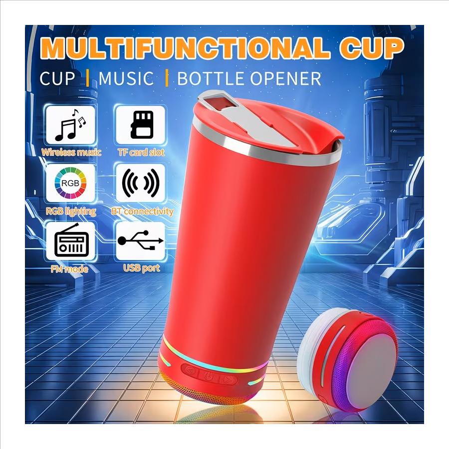 16.5oz Music Mug with Glowing LED Wireless Speaker & Thermos Thermos Suitable for Hot/Cold Drinks, Insulated Coffee Cup with Wireless Sound System,