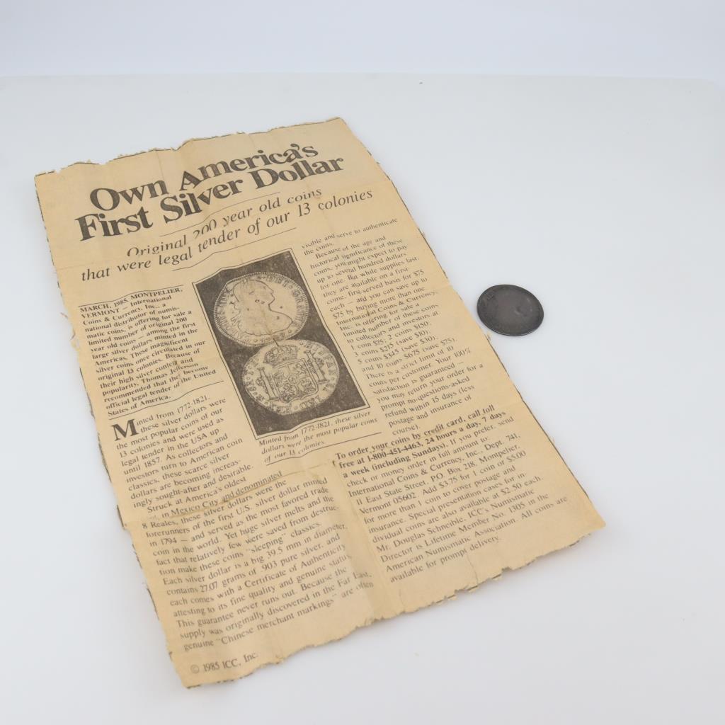 1784 Spanish Bolivia 8 Reales Antique Genuine Colonial Silver Dollar