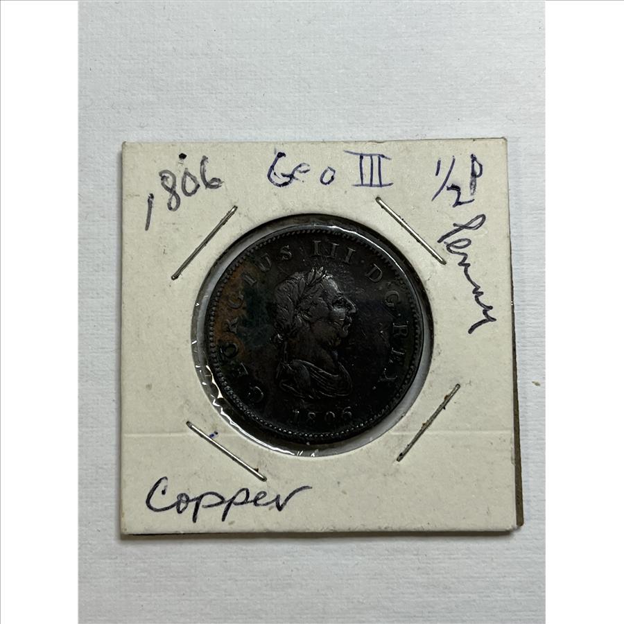 1806 Great Britain George III Copper Half Penny Very Fine Condition