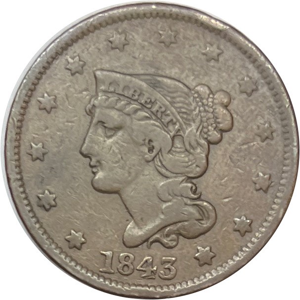 1843 U.S. Large Cent Choice Collector Grade & Nice!