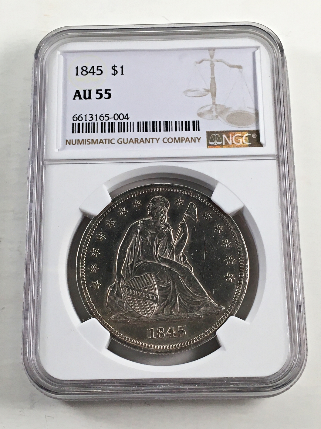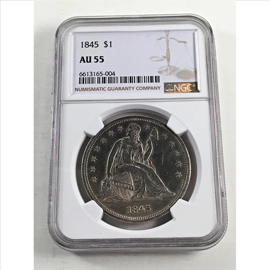 1845 Seated Liberty Silver Dollar*Graded AU55 by NGC