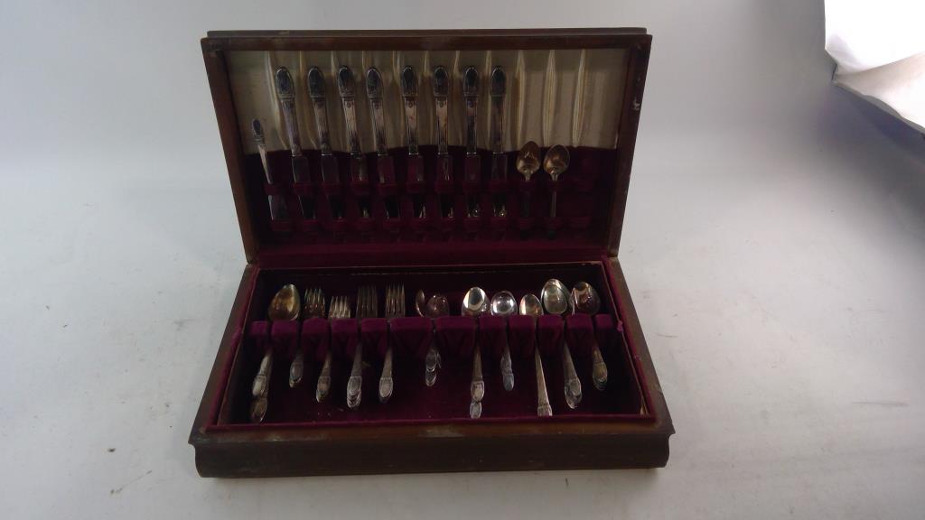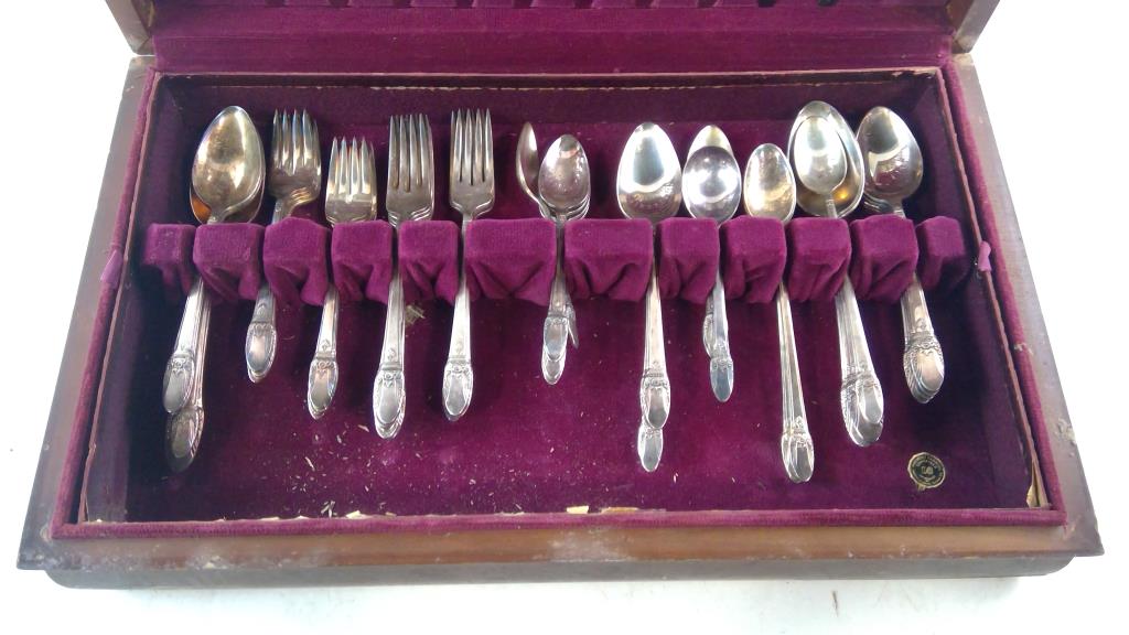 1847 Rogers Bros Flatware In Wooden Case, 15+ Pieces