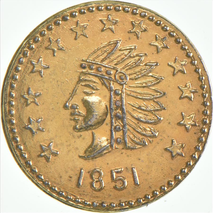 1851 Indian Head Round California Gold Rush Souvenir Token