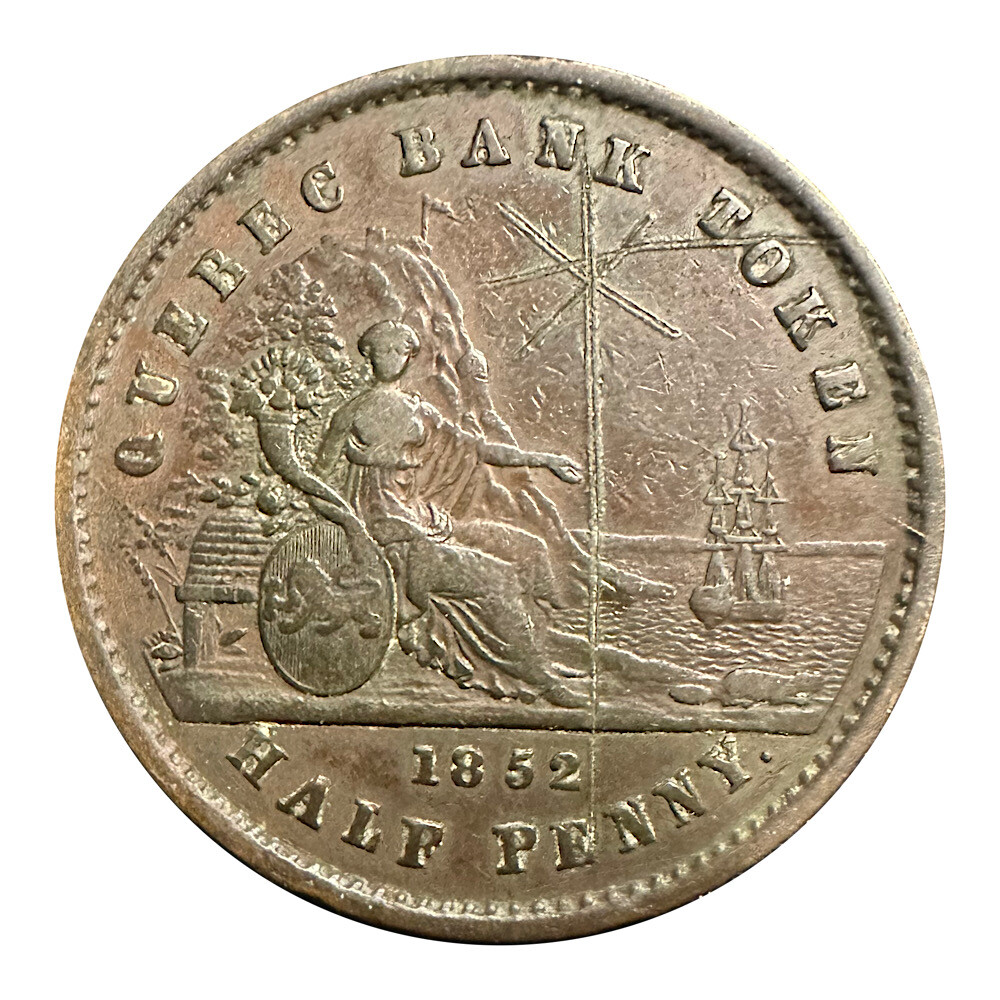 >1852 Canada Quebec Bank Token Half Penny - Excellent Detail and Brick Red in Color