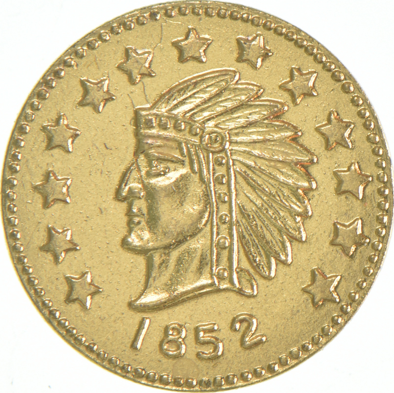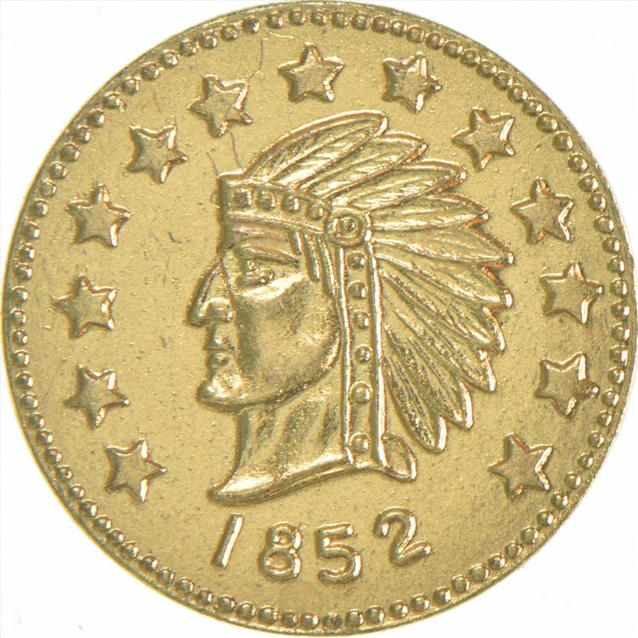1852 Indian Head Round California Gold Rush Souvenir Token