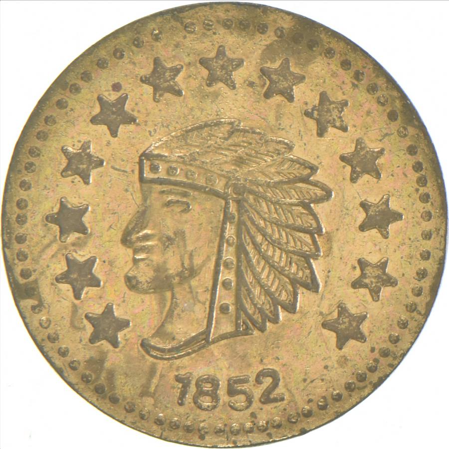 1852 Indian Head Round California Gold Rush Souvenir Token