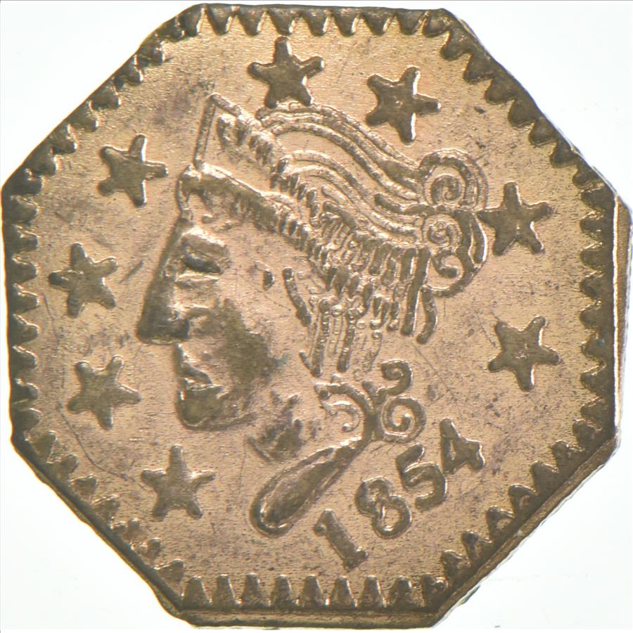 1854 Liberty Octagonal California Gold Rush Souvenir Token