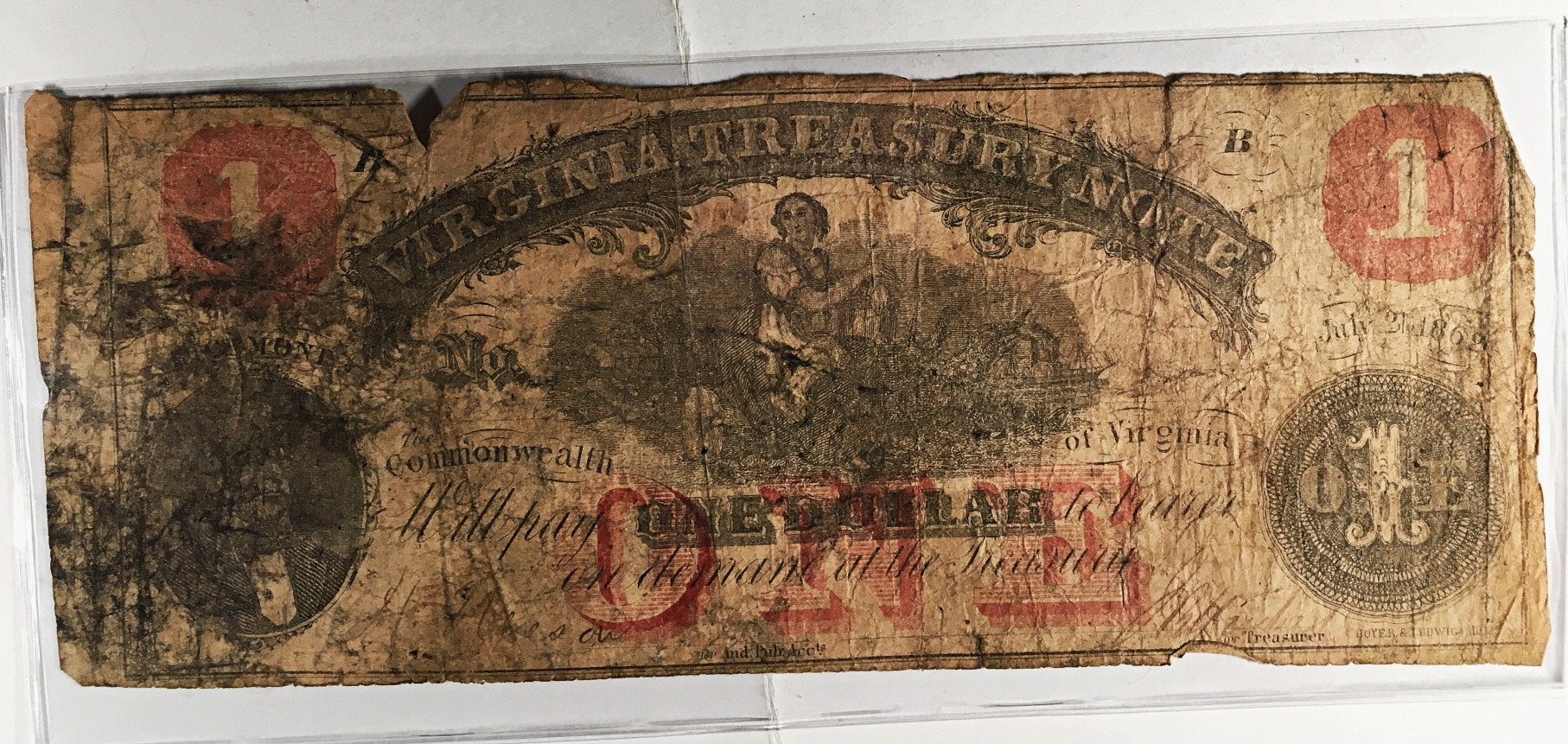 1862 One Dollar Virginia Treasury Note*Richmond, VA