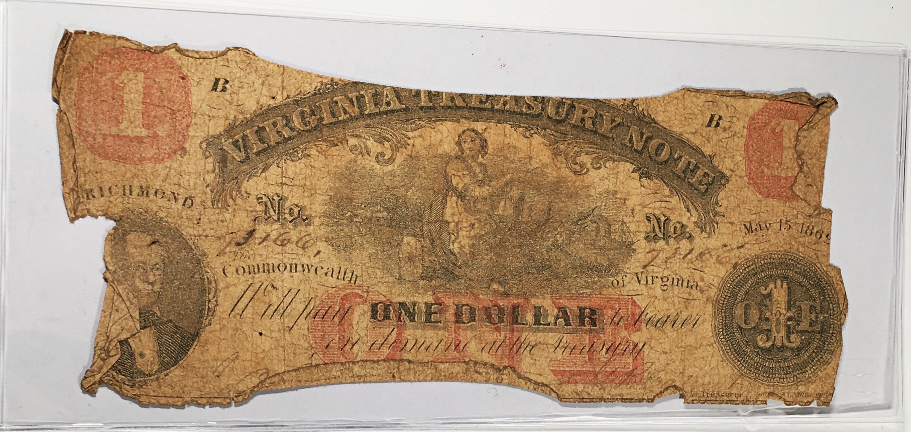1862 One Dollar Virginia Treasury Note*Richmond, VA