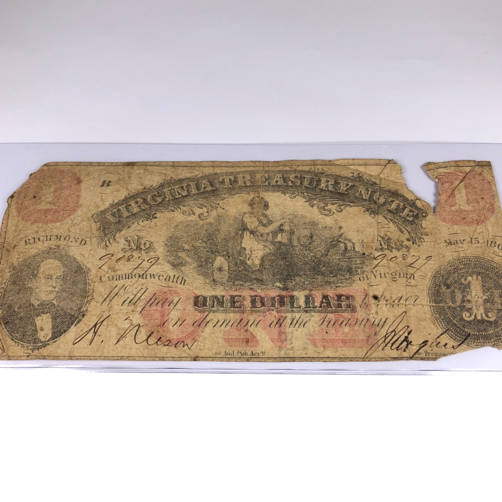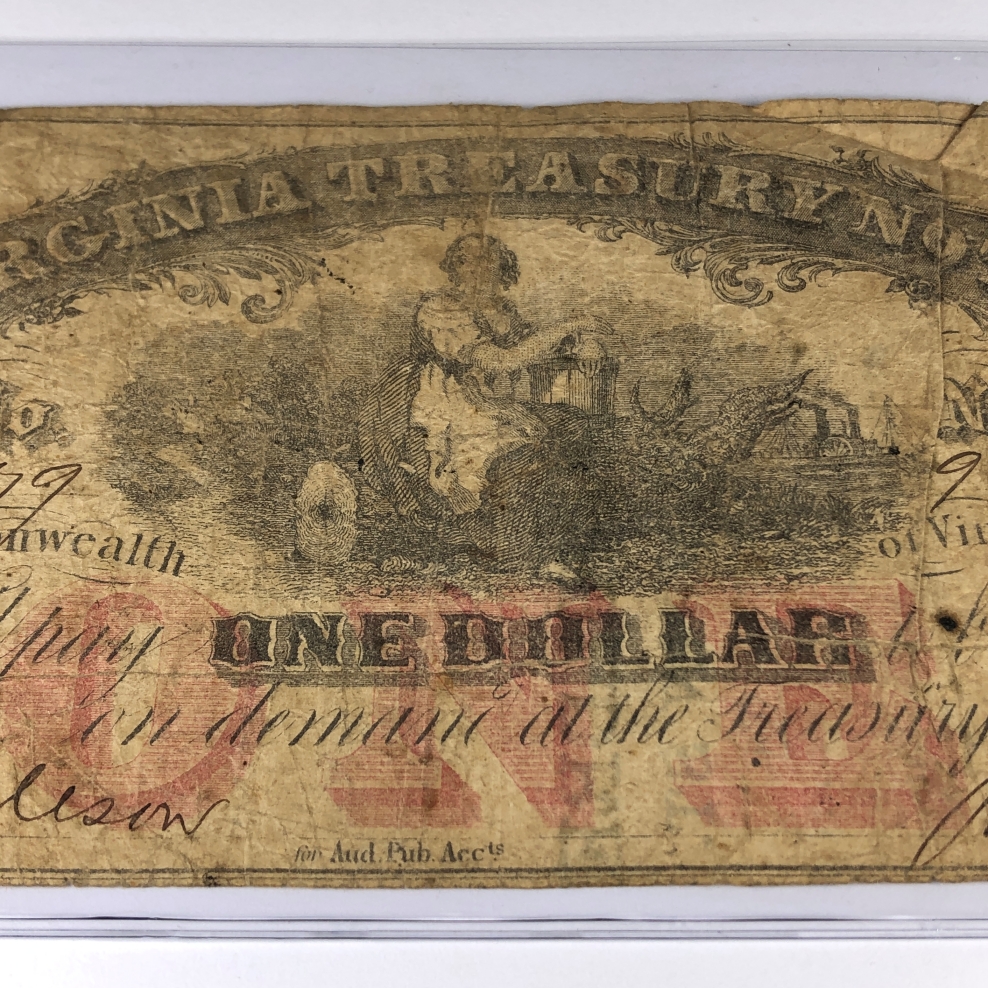 1862 Virginia Treasury $1 Note*Richmond, Virginia