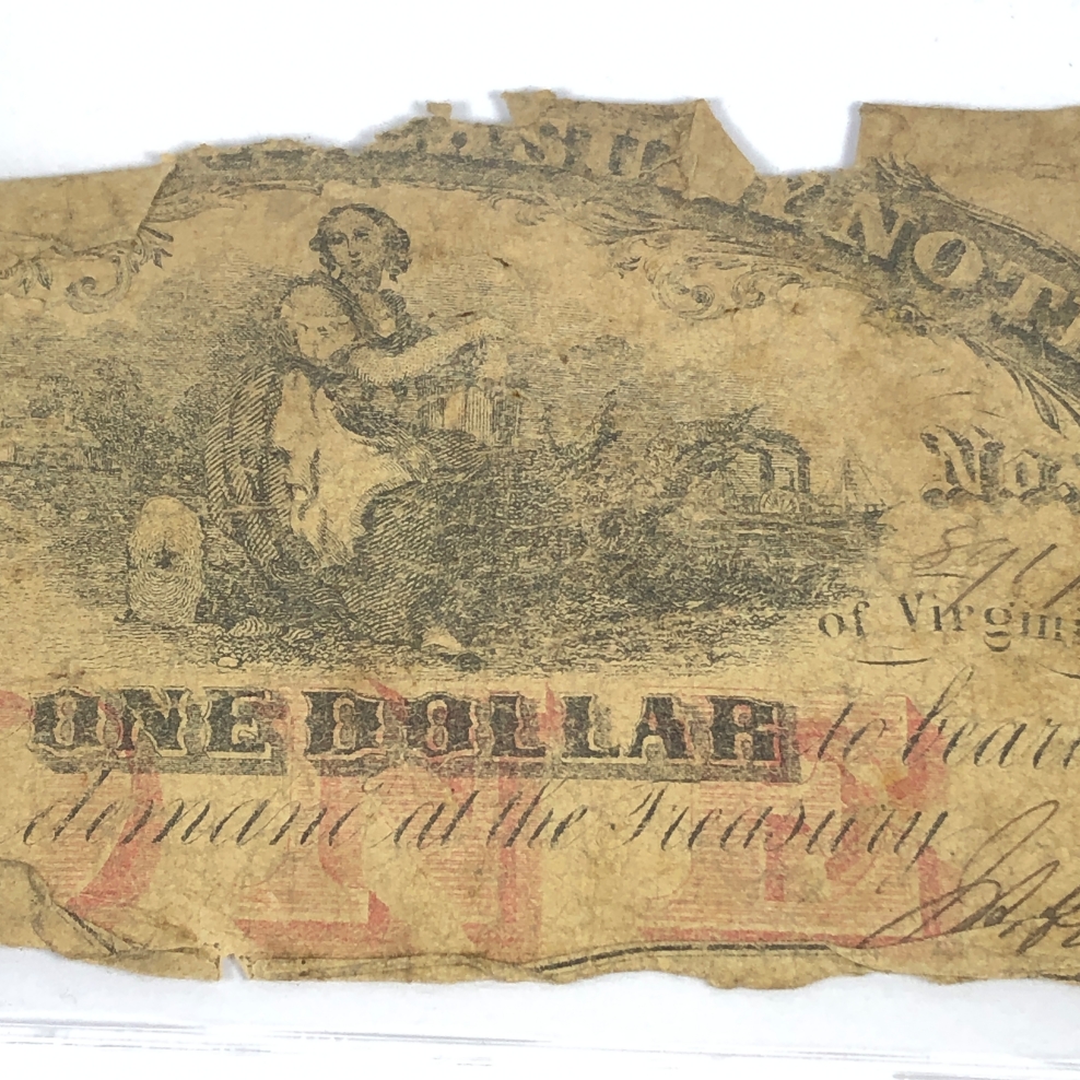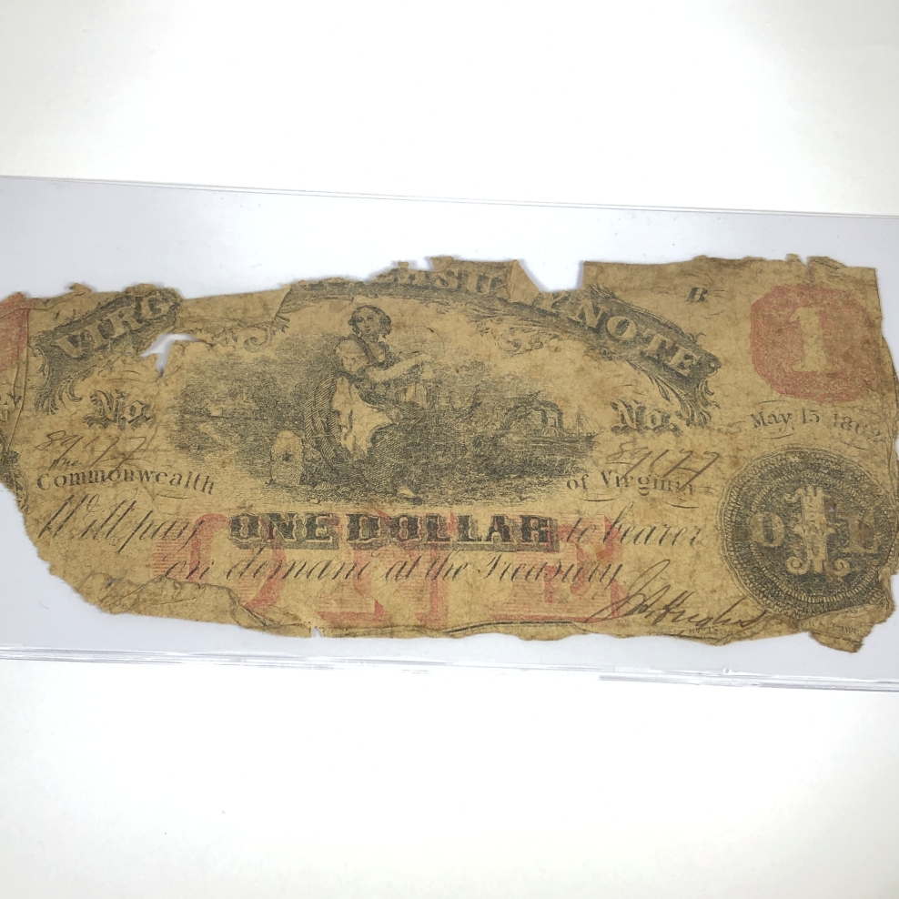 1862 Virginia Treasury $1 Note*Richmond, Virginia